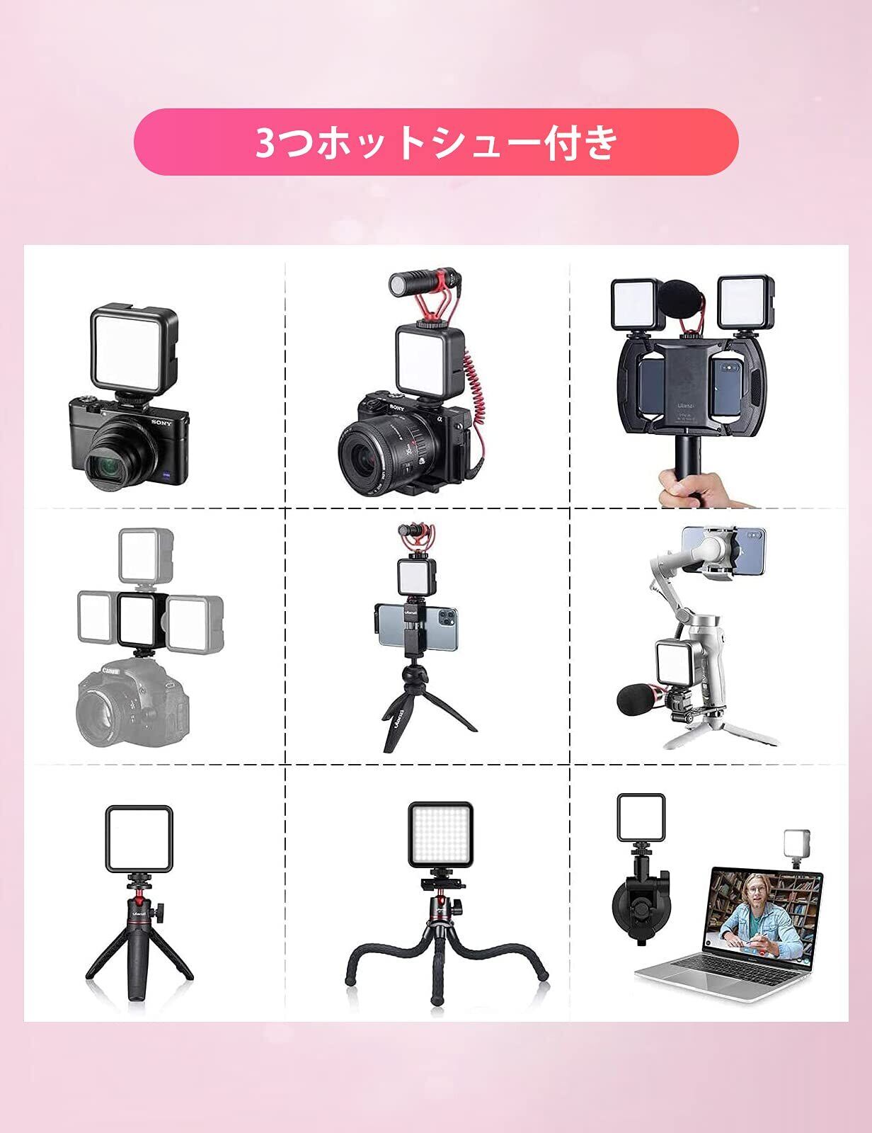 ■【幅広いデバイスに対応!】このLEDライトは、多くのデバイスに対応し、ソニーのミラーレスカメラ(ZV-1、α6000)、GoPro Hero 9、iPhone、Samsung、Canon、Nikonなど、さまざまな機器と組み合わせて利用できるため、お手元の撮影機材と組み合わせて活用できます。