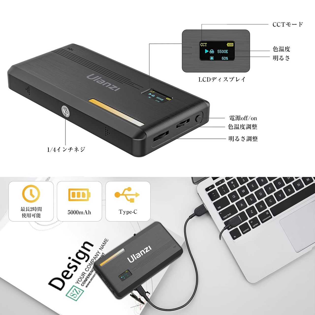 Ulanzi VL200 LEDビデオライト 撮影用 2500K-9000K 無段階調光 撮影照明 Type-C 充電式 小型 軽量 超薄型 持ち運び便利 5000mAh ミニ 商品撮影/ビデオ撮影/YouTube/Tiktok/生放送/自撮り等に適用 日本語説明書付き