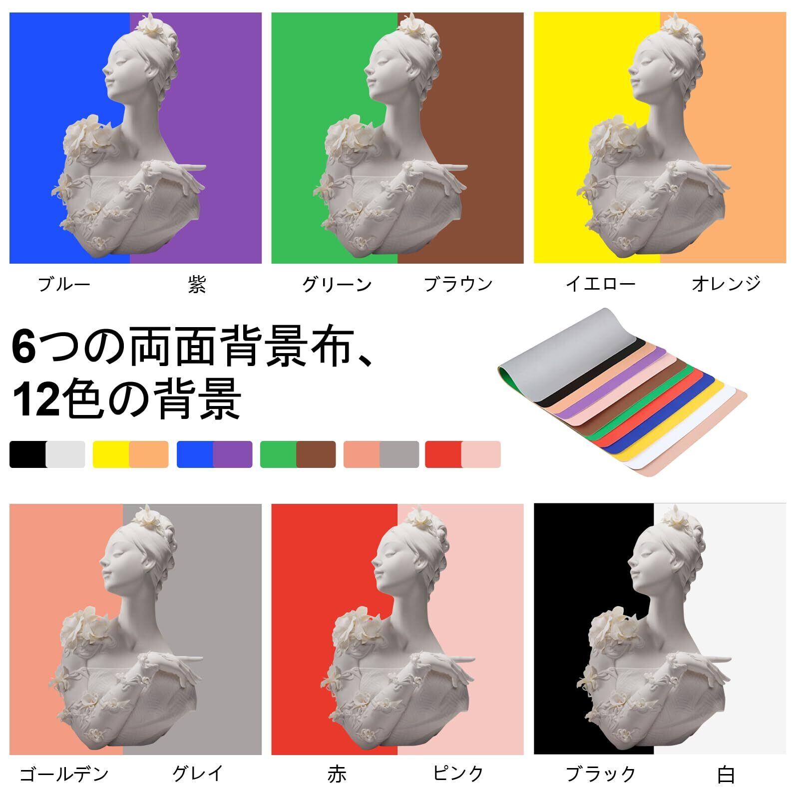 【マルチカラー背景布】異なる色の6つの取り外し可能な背景紙、合計12色が付属しています。 異なる撮影シーンやテーマのニーズを満たし、より創造的なスペースを提供します。