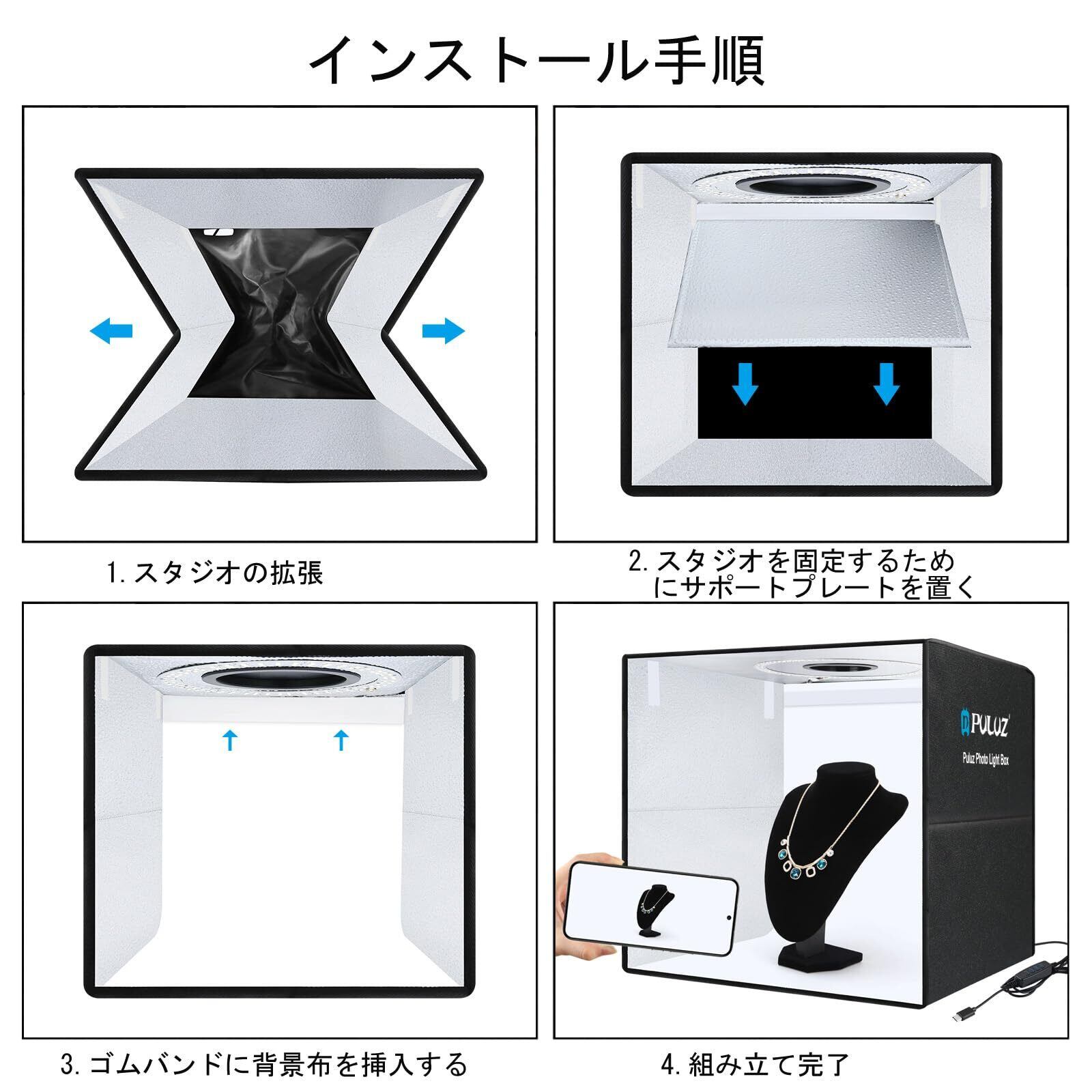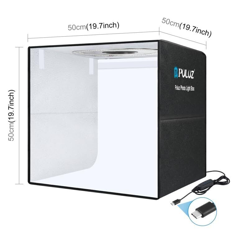 PULUZ 50cm撮影ボックス、ポータブル簡易スタジ商品撮影用 10段階の明るさ調整可能撮影ブース200個6500K超高輝度LEDライト6面カラー12色背景付きグッズ撮影ボックス大型写真スタジオ 撮影キット(Upgraded)