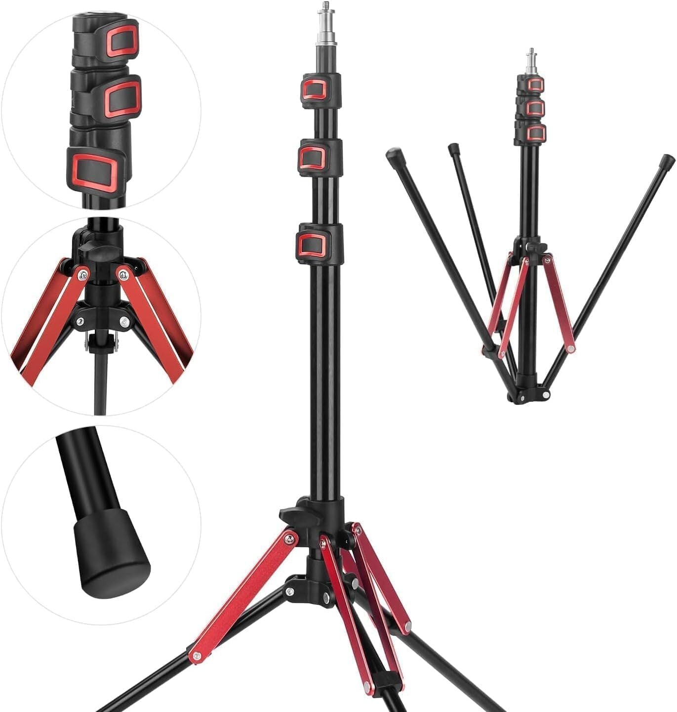 YAYOYA ライトスタンド 三脚 1本入り ストロボ スタンド 189cm アルミ製+ABS 軽量 ライトスタンド 撮影 コンパクト 照明 スタンド 逆向き折り畳み 1/4ネジ付き 照明 三脚 4段伸縮 持ち運び便利 リングライトスタンド 投光器 スタンド 収納長49CM 収納バッグ付き 三脚スタンド 一眼レフ/スマホ/アクションカメラ兼用 黒と赤色