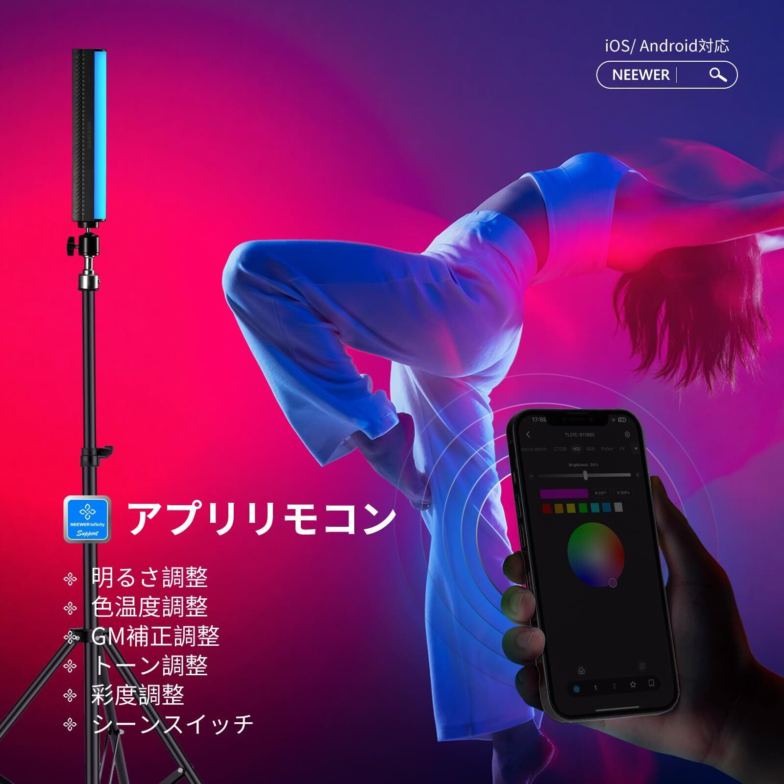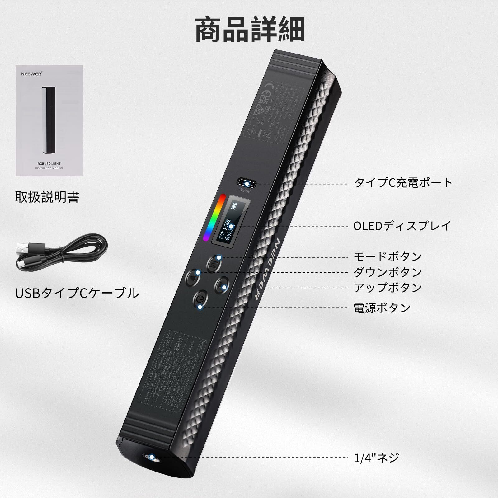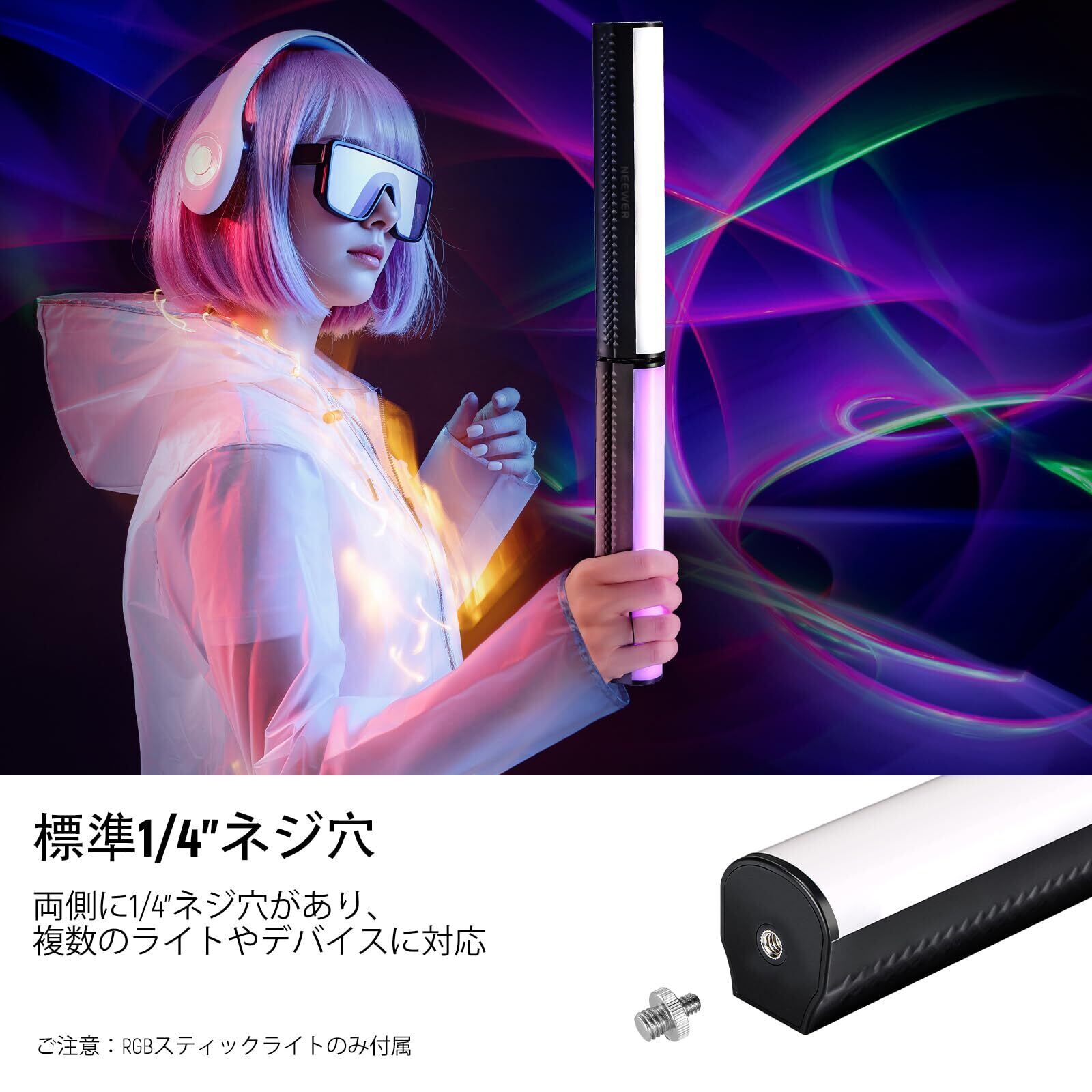 ■【多彩なライティングを実現するRGBスティックライト!】NEEWERのRGBスティックライトは、2500Kから8500Kまでの色温度調整が可能で、様々なシーンに最適な照明を提供します。高い演色評価指数(CRI95+)を誇り、自然な色合いを引き出します。ライブ配信や動画撮影に欠かせないアイテムです!