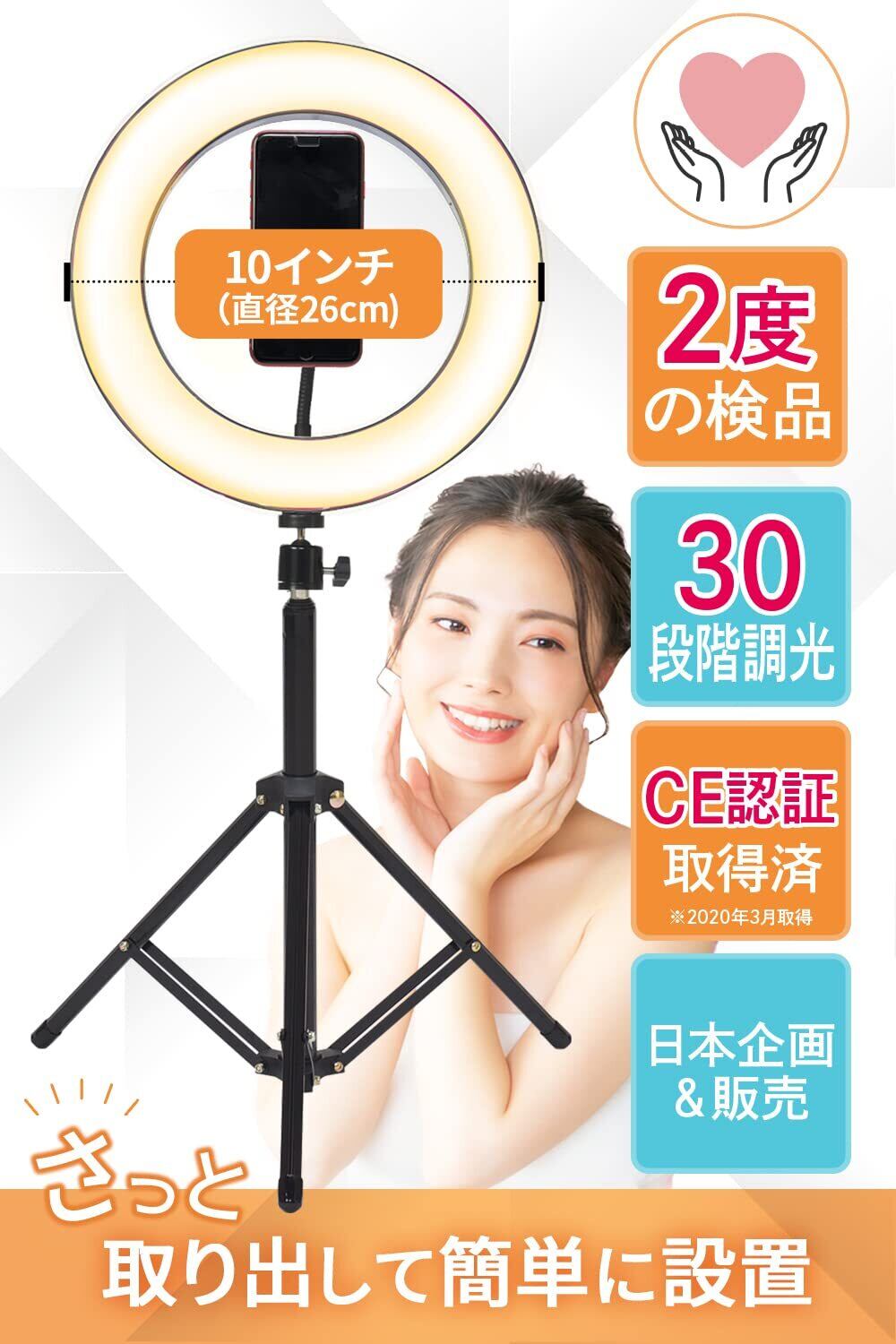 【30段階調光可能】色調整3段階、明るさ調節10段階の合計30段階の調節が可能!調光範囲は2900K~6500Kと広範囲で、シーンに合わせて昼光色・昼白色・電球色の調整が可能です。 本体総重量:850g/LEDリングライトサイズ:10インチ(直径26cm)/コードの長さ:1.8ⅿ