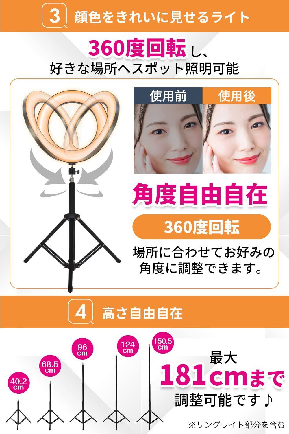 ■【安定した三脚設計で様々な角度から撮影できる!】このリングライトは、丈夫な三脚スタンドが付属しており、安定性を確保。高さや角度を調整できるので、自分の理想のアングルで撮影することができます。