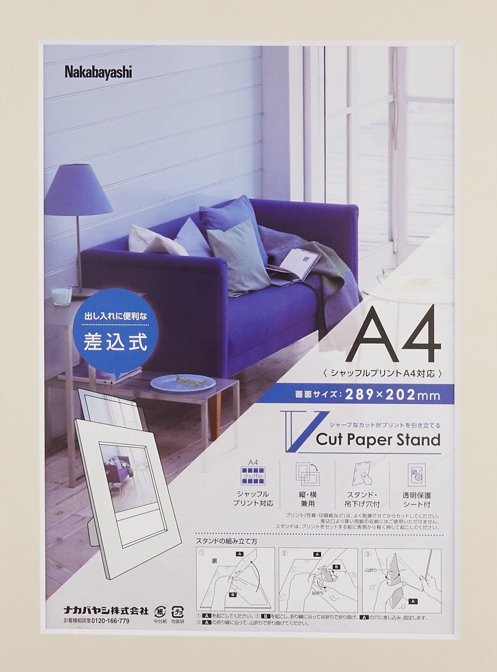 プリントの出し入れに便利な差込式を採用差込式の為、繰り返しご使用いただけます。プリントと保護シートは上部スリットから出し入れします。キャンバスのような質感でインテリアとしてもギフトとしても使いやすい風合いの紙を採用しました。