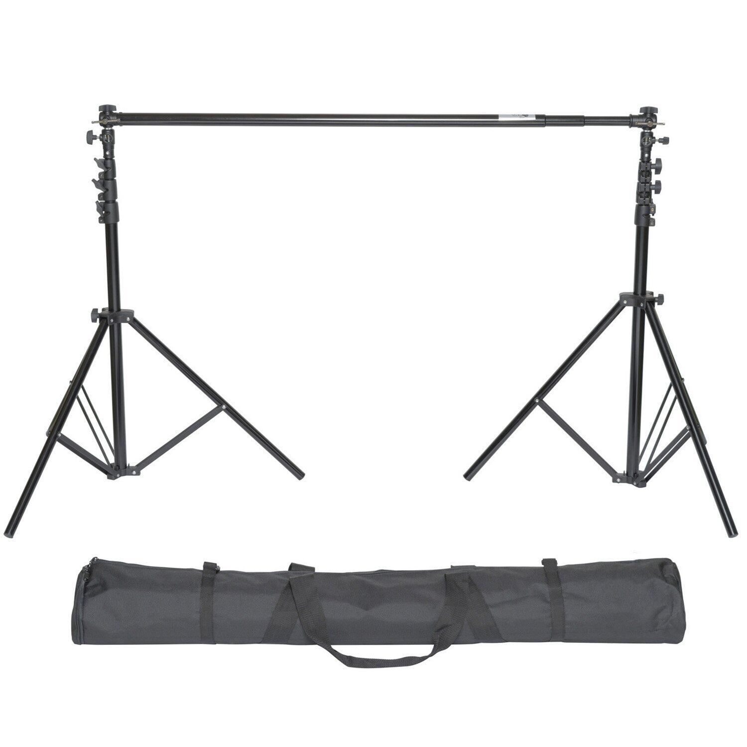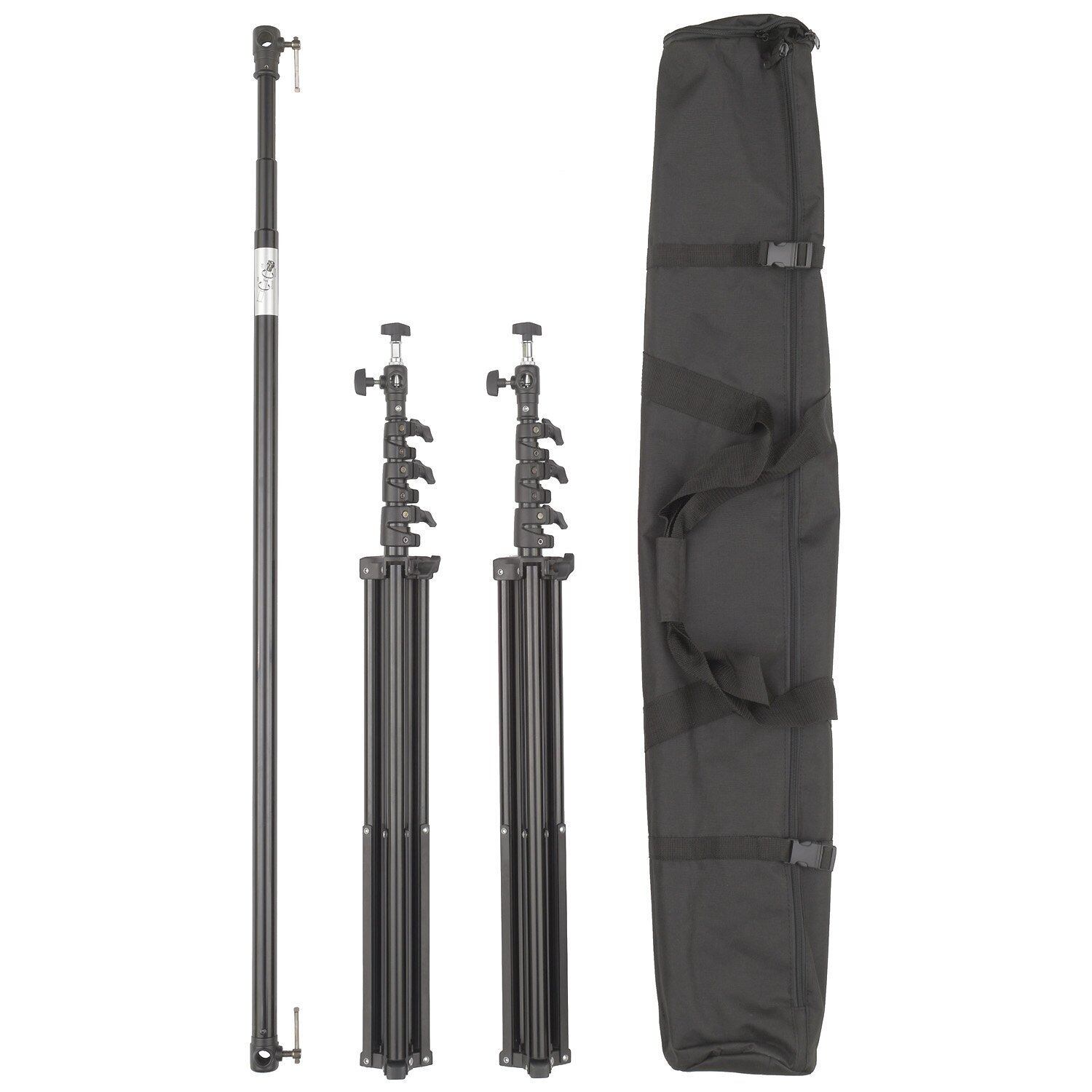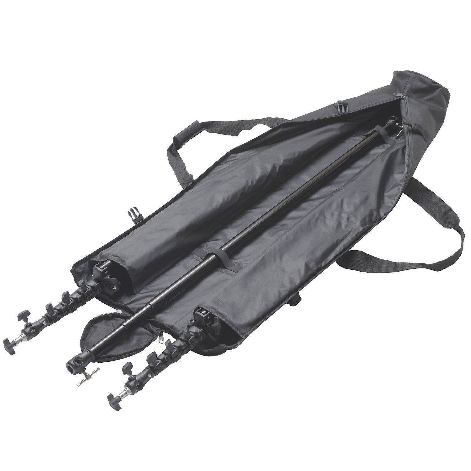 事務所や廊下・倉庫・ガレージなどを本格的スタジオに早変わりさせる背景紙サポートとスタンドをセット。スタンド部はエアクッション付きで最大高は2.8m。背景紙サポート用のバーは背景紙の幅に合わせて素早く長さを決定できる3段の伸縮式で、最大2.9m幅まで対応。ロケにも便利なキャリングケースも付属しています。目的に応じたロール紙や背景布を別途ご用意ください。