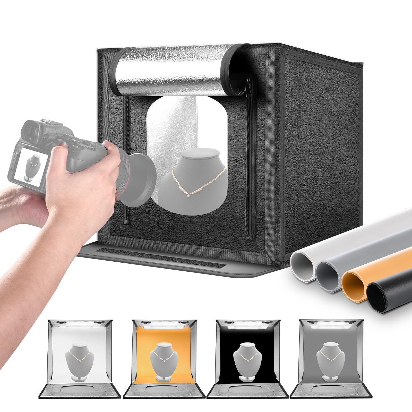 【2025最新】NEEWER 40W 撮影ボックス 40x40cm ライトテント 撮影ブース アップグレード 144個LED 5600K 5310lx/0.5m 4色背景布(橙/灰/黒/白) グレアフリー 卓上ライトボックス 調光可能 ポータブル 折りたたみ 写真スタジオ ジュエリー撮影/化粧品撮影/小物撮影/商品撮影 LP40
