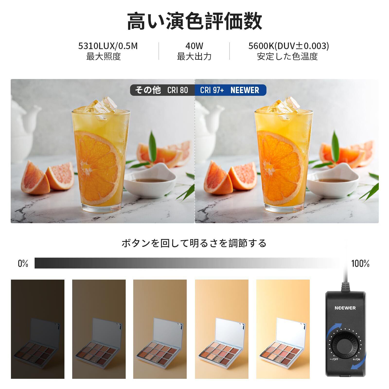 ■【明るさで差をつけるプロフェッショナルな撮影環境!】NEEWERの40W撮影ボックスは、144個の高輝度LEDライトを使用しており、5600Kの色温度で自然光に近い色調を実現します。5310lxの明るさを提供し、さまざまな製品を美しく引き立てることができます。