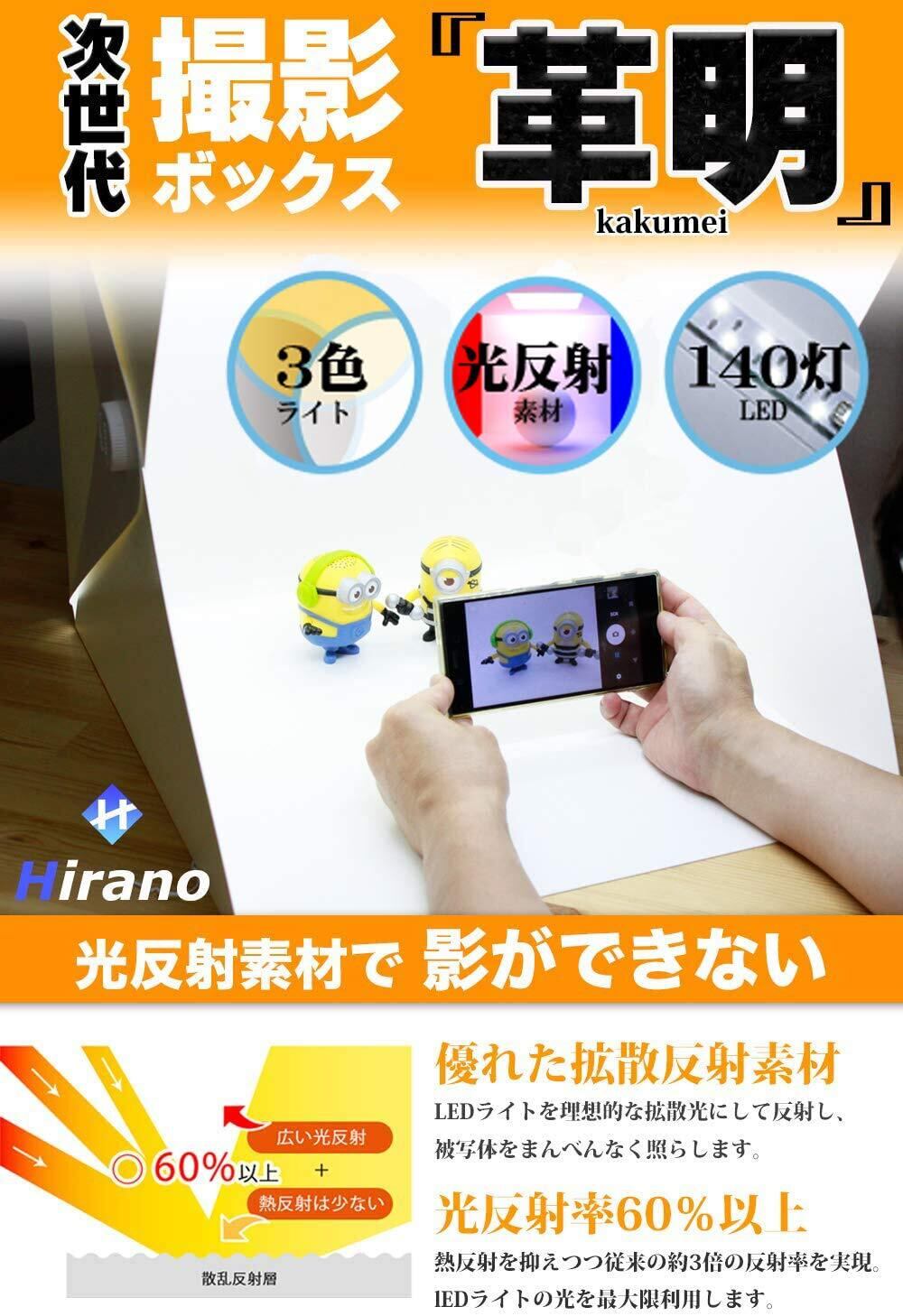 次世代撮影ボックス『革明』【ヒラノ照明】40cm簡易スタジオ/3色LEDライト140灯 折りたたみ【調光10段階・4色背景・バッグ付】EK-SB003