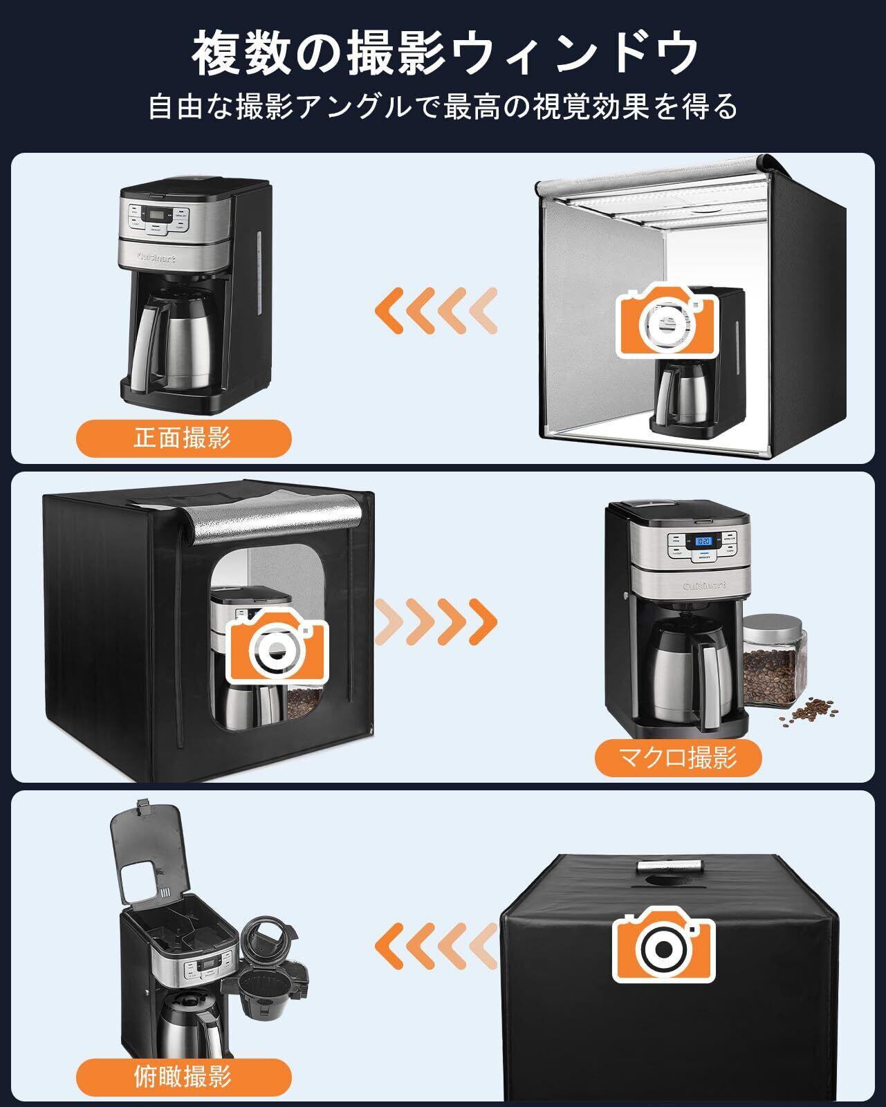【広い撮影スペース】この撮影ボックスは100cmの大型設計で、80cmまでの様々な被写体に対応できます。商品撮影、静物撮影、料理撮影など、様々なプロの撮影ニーズに完璧に対応します。