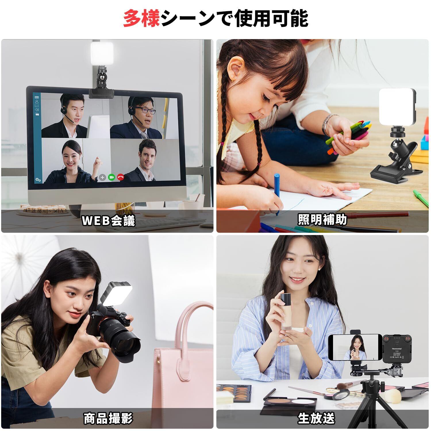 【限定セール】Hemmotop LEDライト 撮影 照明 クリップ式雲台付き ビデオライト 81球 コンパクト 充電式 3000mAh 2500K-9000K Ra95+ 調光 最大1000Lux 配信 デジタルカメラ DJI Osmo Pocket Canon Nikon Sony zoom用 コード長約150cm