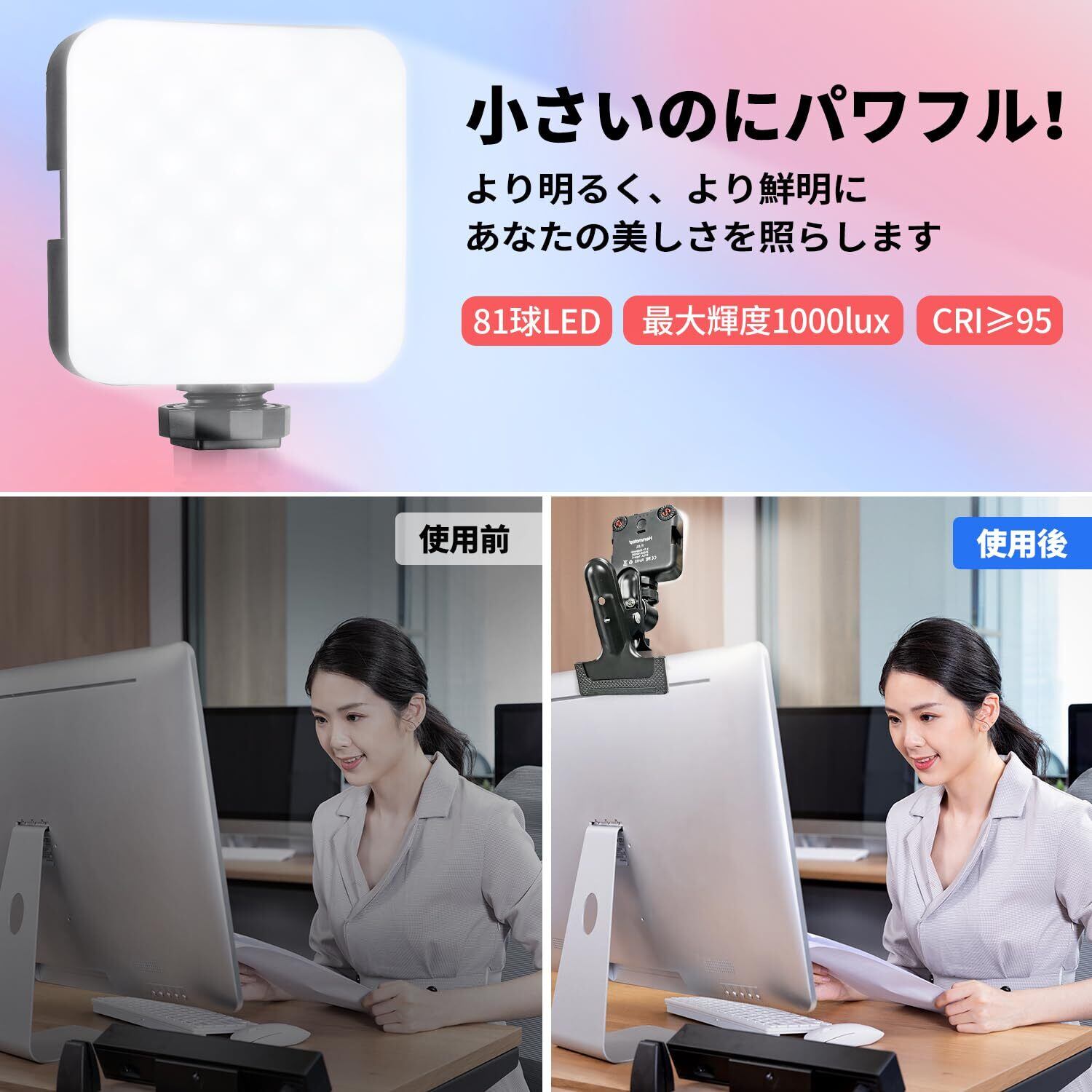 【限定セール】Hemmotop LED ライト 撮影 照明 クリップ式雲台が付き ビデオライト 81球 コンパクト 充電式 3000mAh 2500K-9000K Ra95+ 調光 最大1000Lux 配信 デジタルカメラ DJI Osmo Pocket Canon Nikon Sony zoom用 コード長約150cm
