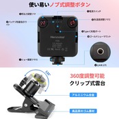 ■【クリップ式雲台で取り扱いが簡単!】クリップ式の雲台が付いており、任意の場所に簡単に取り付け可能です。特に自宅での配信や外出時の撮影に便利で、素早く取り付けられるため、ストレスフリーな使用感を実現します。思い通りの位置にライトを調整しやすいため、あらゆる角度からの照明が可能です。