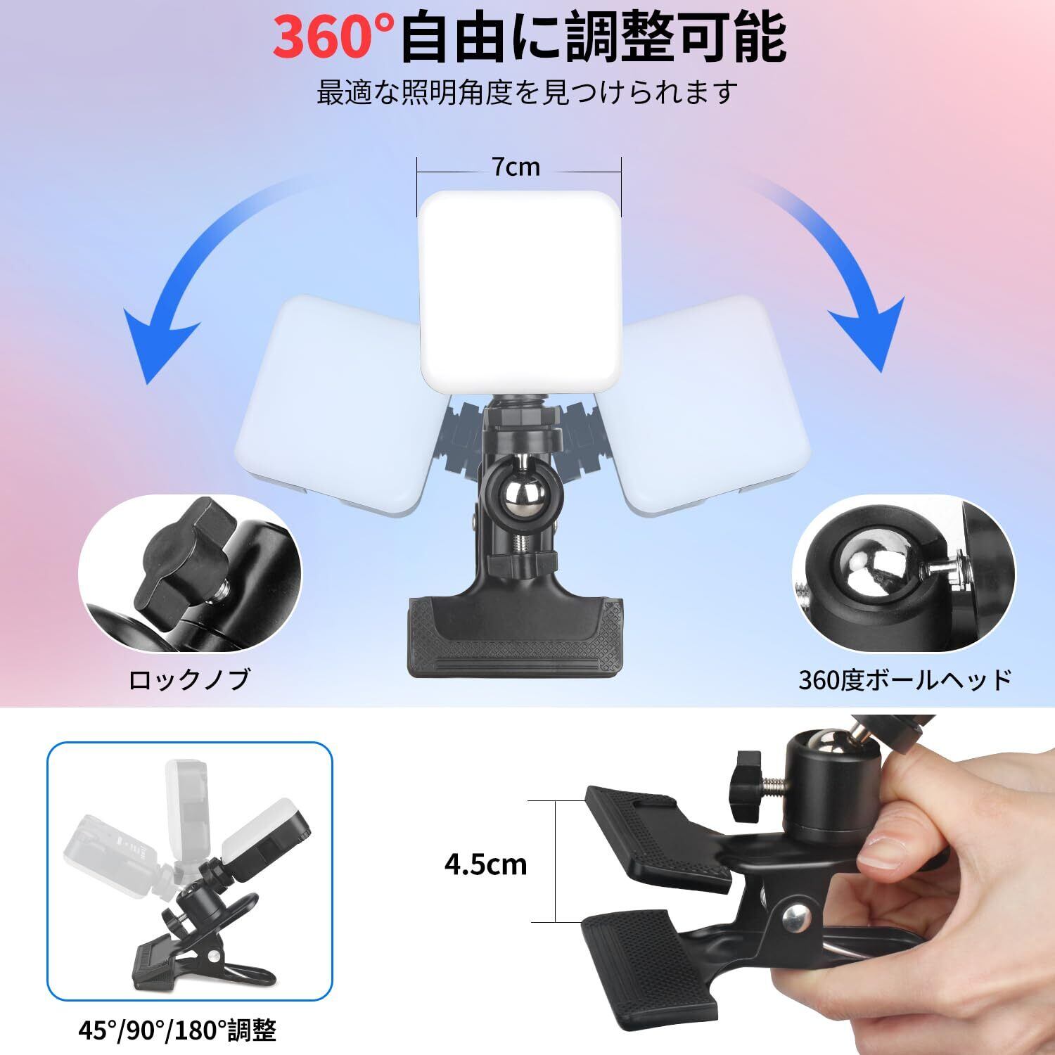 【お買い上げ日より24ヶ月品質・どこにでも挟める新型撮影照明】「1」撮影照明ライトの明るさは自由に調整可能、それに明るさを強化して最大1000Luxに達し、明るさに厳しい環境やより多いな撮影補助照明に対応可能です。ビデオライトとして旅行記録、人生記録、食物、写真撮影などに適用します。「2」撮影ライトの色温度は9000Kに達し、お肌を綺麗で白く見えて、生放送や美顔ライトとして人気です。「3」リップ式雲台付き、ビデオライトを360度までに自由に調整可能の上にどこにでも挟めることができます。YouTubeビデオ、自撮り、生放送、TikTok 映画製作用、在宅勤務、Web会議などに適用できます。美顔ライトも撮影ライトもオススメ、明るいままなので普通に懐中電灯としても使えます。