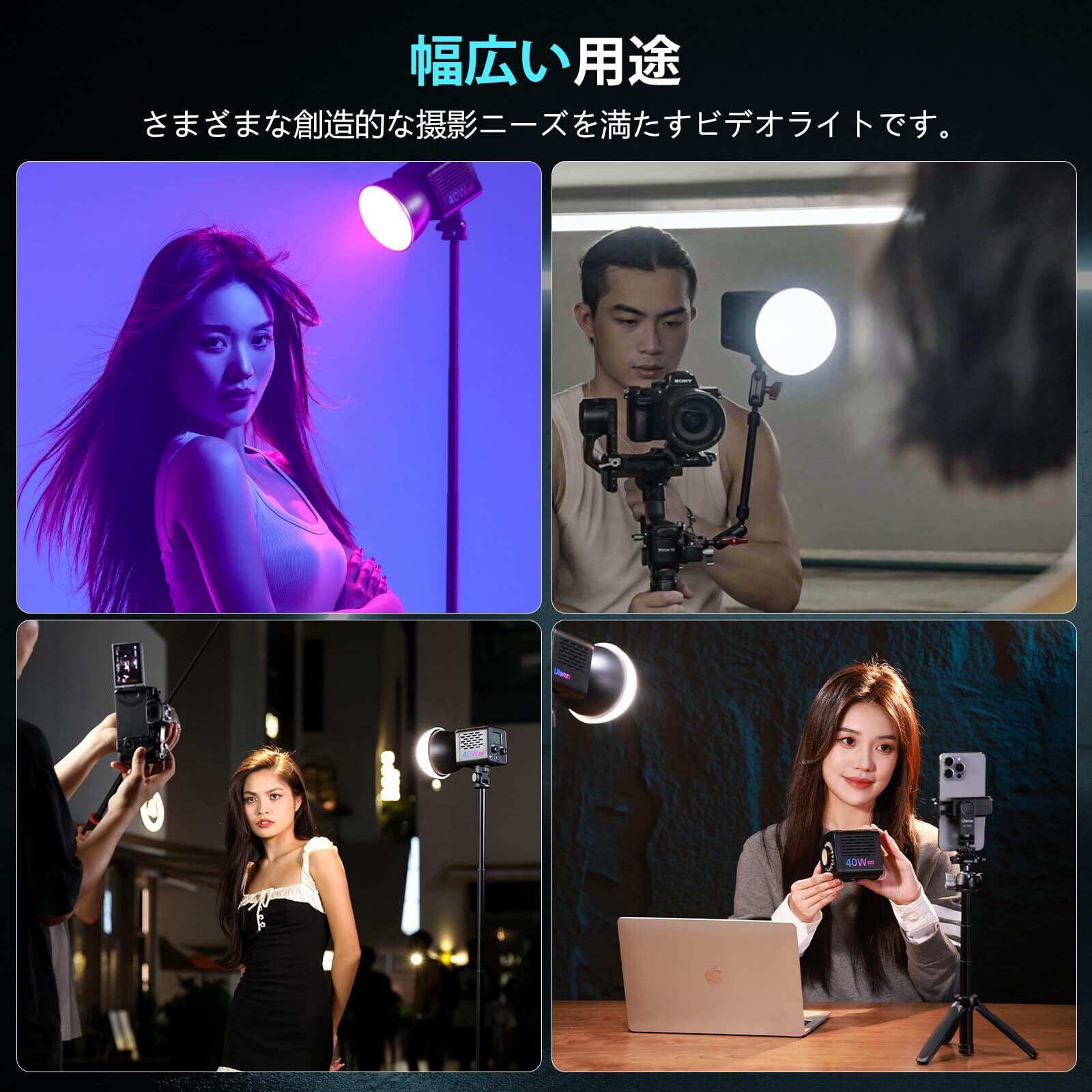 Ulanzi L024 40W RGB COB撮影用ライト LEDビデオライト RGB COBライト デュアル色温度常定光ライト 2500K-6500K 無段階調光 超高輝度 撮影補助光 MAX 50W CRI 95+/TLCI 96+ 20シーンモード 3400mAh 充電式 AC/DC電源 Type-C充電ポート 1/4''ネジ穴 超軽量 持ち運び便利 生放送/自撮り/商品撮影/動画撮影