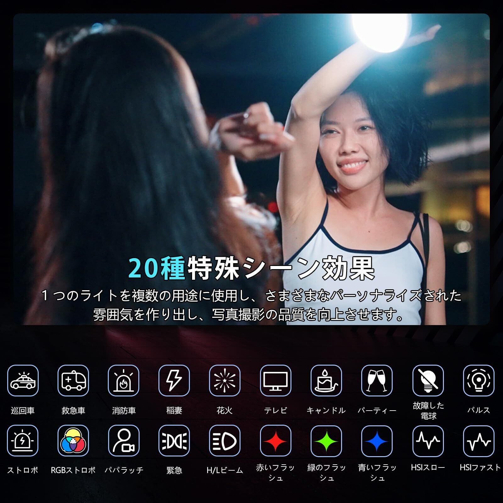 【RGBCWモード&20種類の特殊効果】MS60Cは、CCTモード、HSIモード、RGBCWモード、FX特殊効果モードの4つの照明モードを切り替えることができます。RBGCWモードは、赤、緑、青、冷白、暖白の個別調整をサポートし、カスタマイズされた照明色を実現します。2500K~6500Kの色温度で、自然光をより忠実に再現し、0~359°の完全な色相角度、0~100%の彩度、および20種の特殊照明シーンにより、撮影時にリアルな照明が得られ、多彩な効果を生み出すことができます。