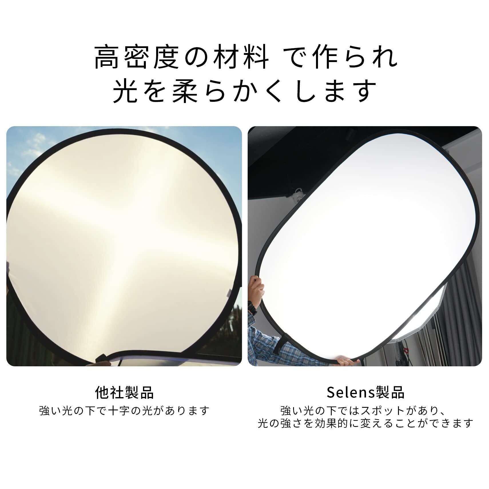 ■【高性能な光拡散を実現!】Selensのソフトディフューザーは、100x150cmの大きなサイズを持ち、光を柔らかく拡散することで、プロフェッショナルな撮影をサポートします。スタジオ撮影やビデオ撮影、屋外でのポートレートにも最適なアイテムです!
