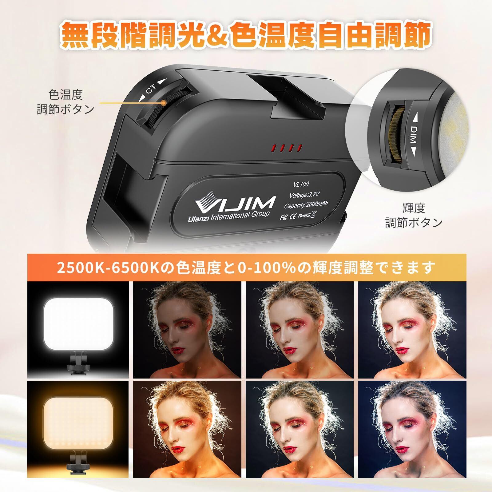 ■【多様な色温度でクリエイティブな撮影をサポート!】UlanziのLEDビデオライトは、2500Kから6500Kまでの幅広い色温度設定が可能です。これにより、シーンや必要に応じた明るさを実現し、プロフェッショナルな映像制作をサポートします!