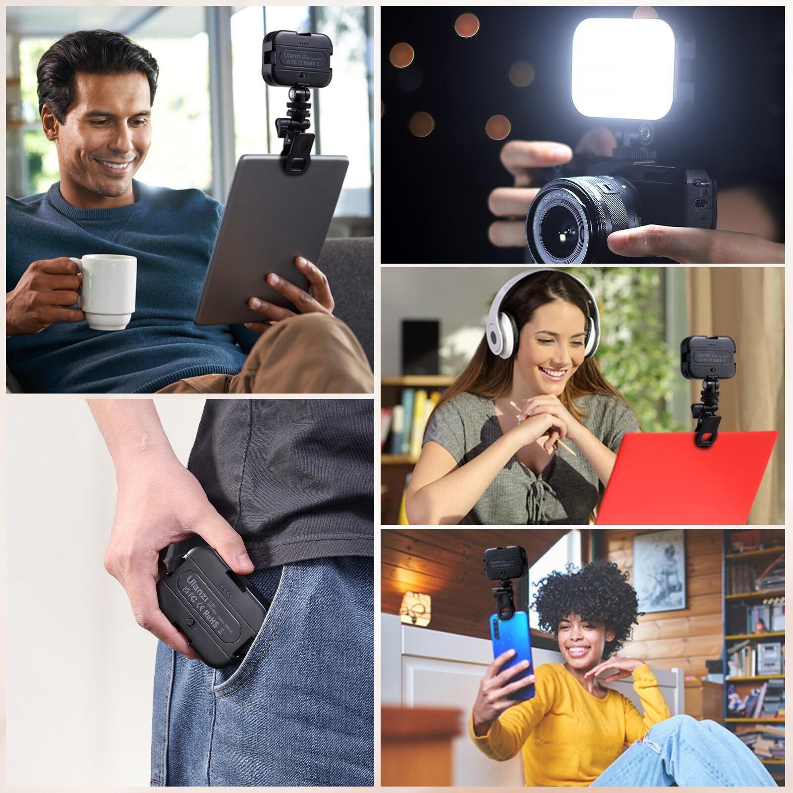 Ulanzi LEDビデオライト パソコンライト クリップ式 会議ライト 撮影用ライト Type-C充電式 2000mAh 小型 170°回転式 2500K-6500K色温度 4つコールドシュー 超高輝度 明るさ調整 CRI95+ 軽量
