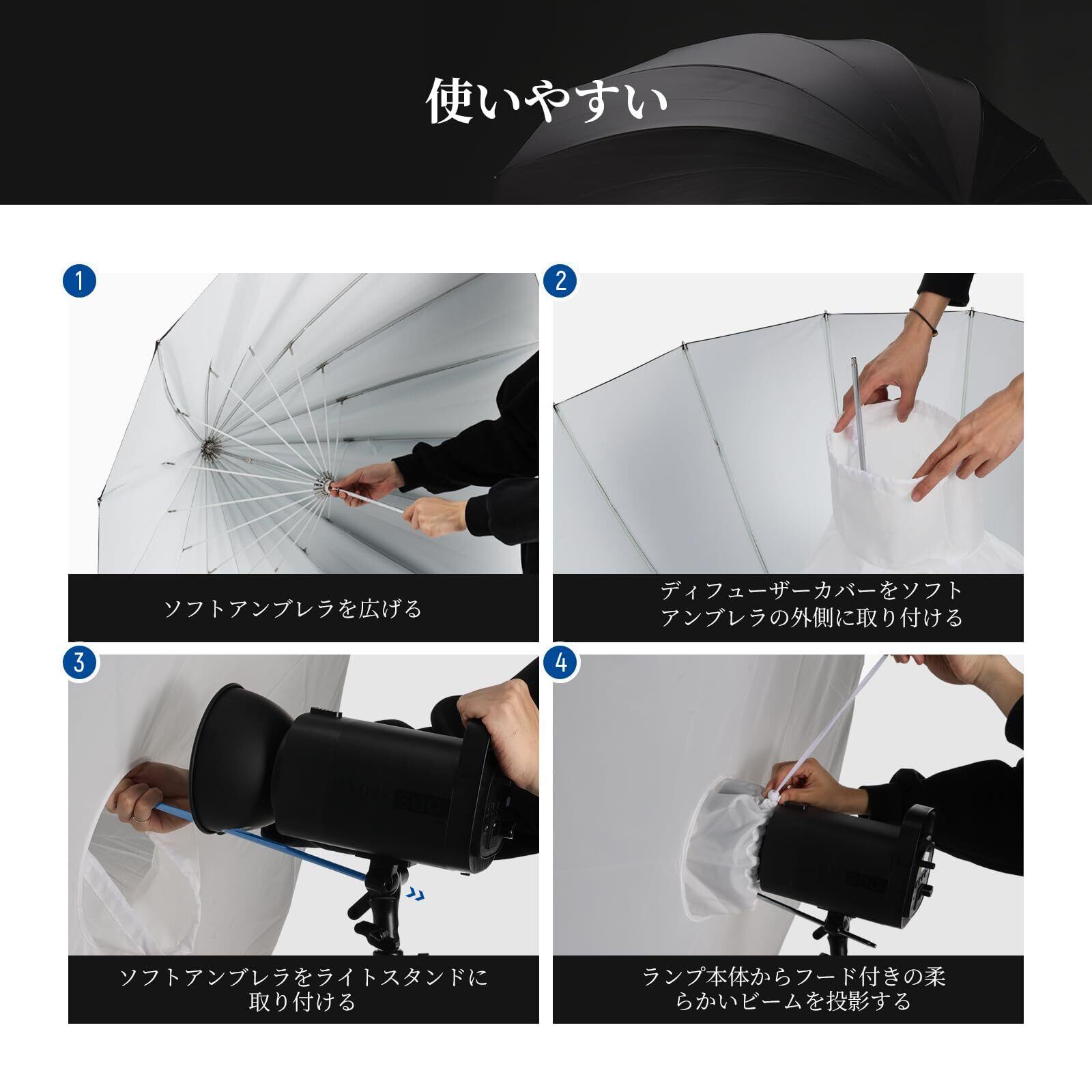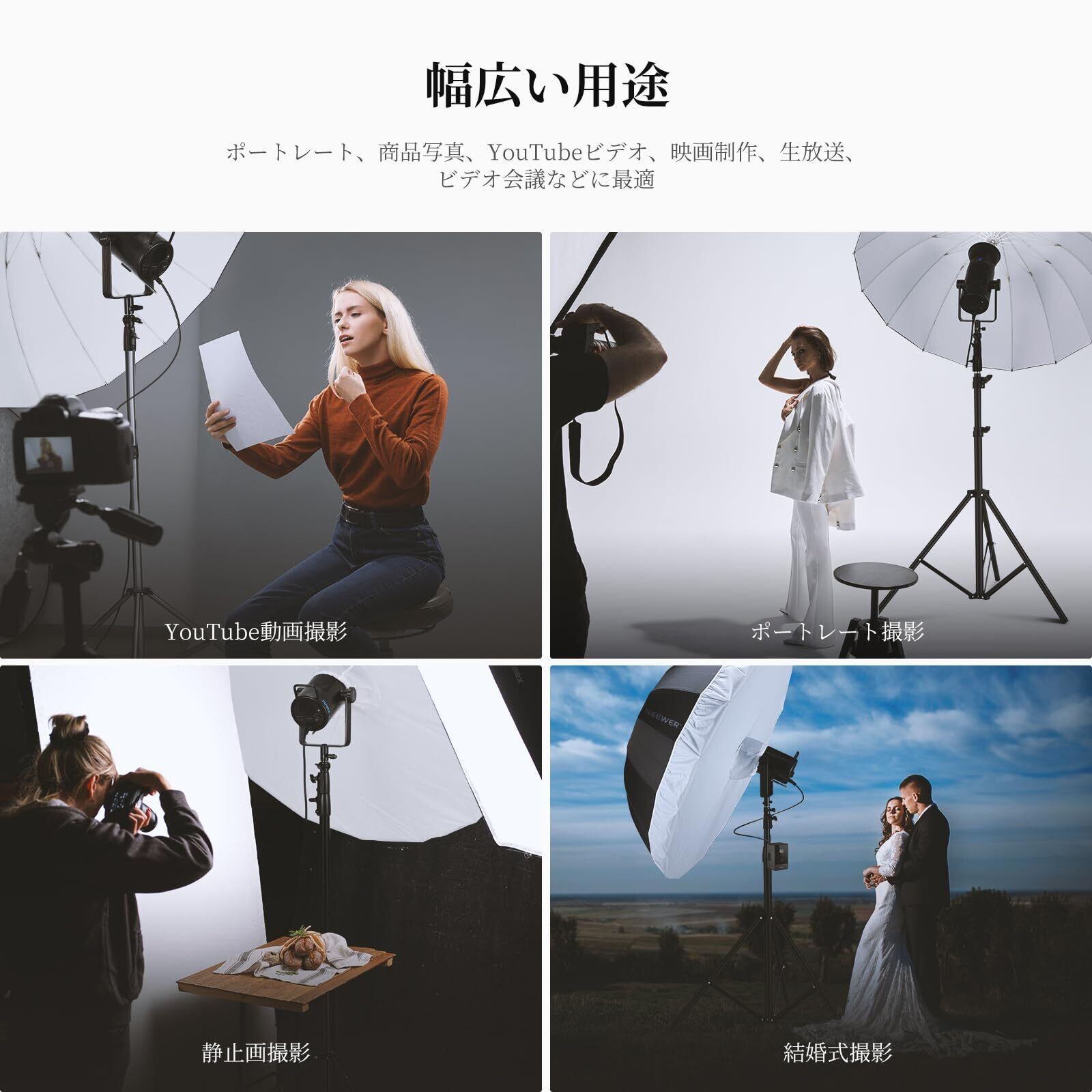 【傘のように素早く折りたたみ&広げる】本物の傘のように簡単に開閉でき、使わないときは付属の収納バッグに折りたたんで収納できます。ポートレート、商品撮影、YouTube動画、TikTok動画、映画撮影、生放送、ビデオ会議、オンライン指導などに最適です。