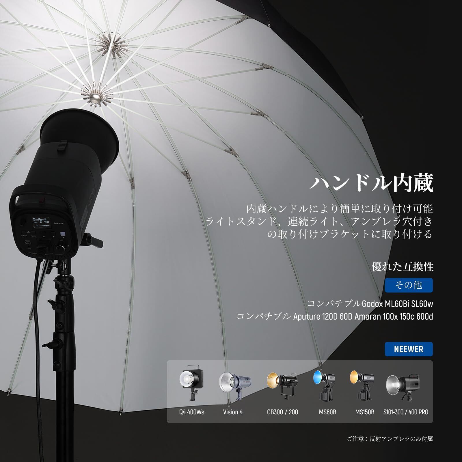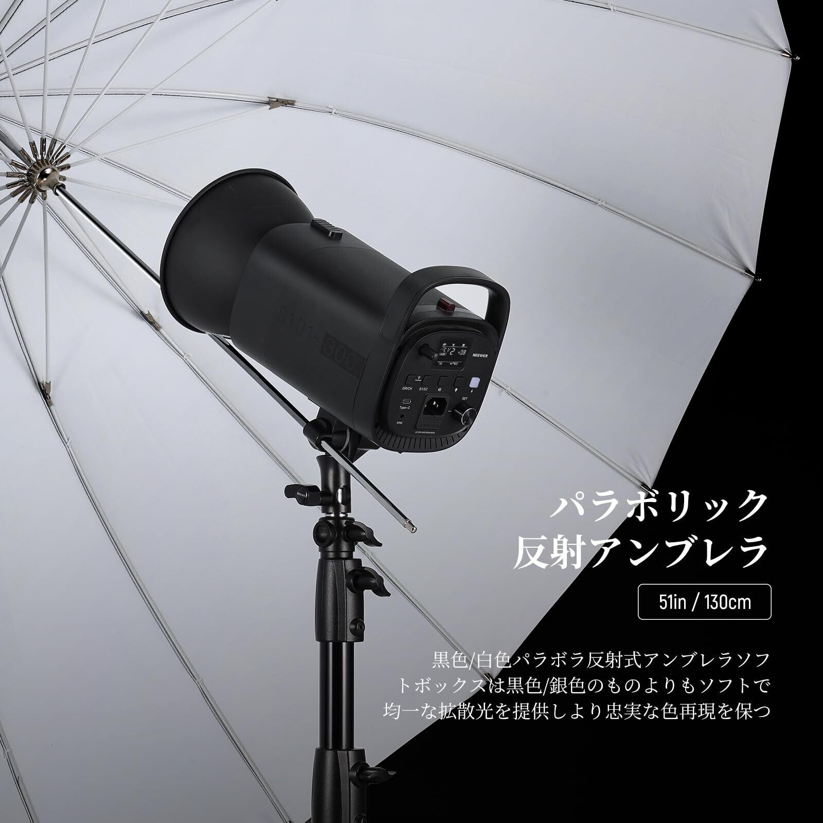 ■【柔らかな照明でプロフェッショナルに!】NEEWERのパラボラ反射アンブレラは、51インチ(130cm)の大きなサイズで、広範な撮影に適した柔らかな光を提供します。ホワイトインナーとディフューザーカバーを採用し、被写体を優しく照らし出す理想的な照明環境を実現します。