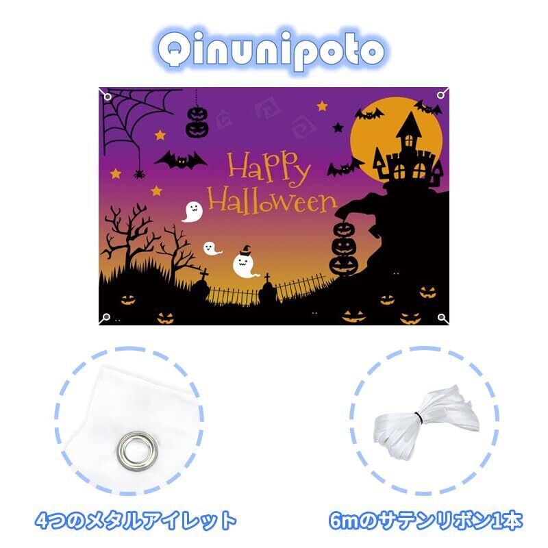 ■【ハロウィン気分を盛り上げる!】Qinunipotoのハロウィン布は、1.5m x 1mのサイズで、お化けやコウモリのデザインが施されています。ハロウィンパーティーやフォトブースの背景として最適で、季節感あふれる空間を演出します。