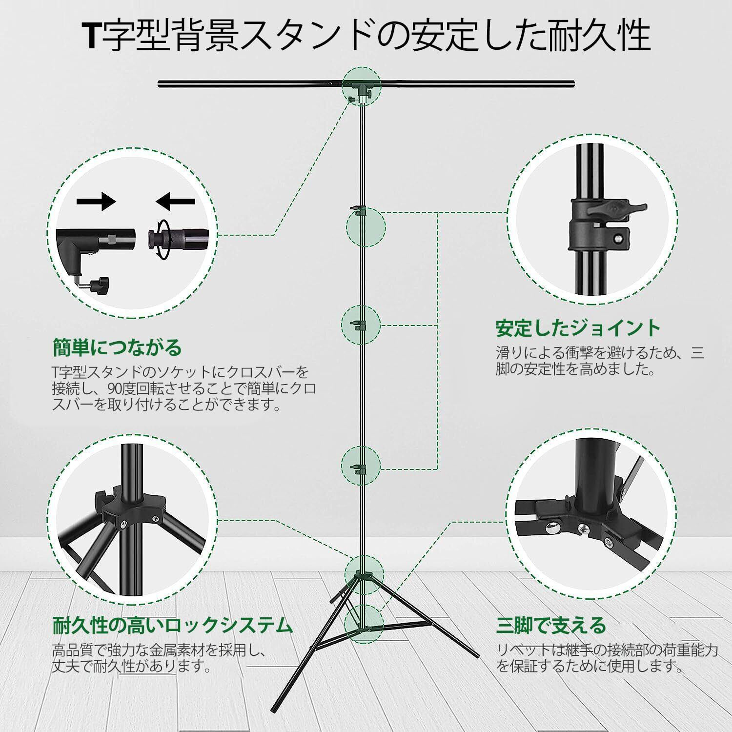 ■【高品質な素材とデザイン!】このT字型背景スタンドは、丈夫で耐久性に優れた素材で作られており、安定した設置が可能です。また、グリーンバック付きで、クロマキー合成にも最適。YoutubeやZoomでの会議でも、印象深いビジュアルを提供します。