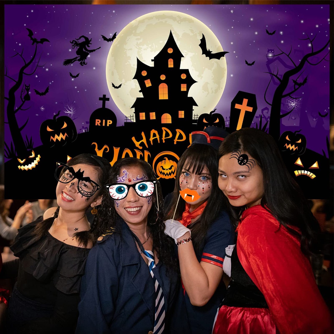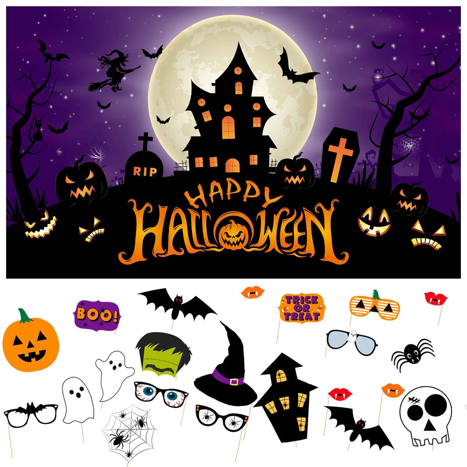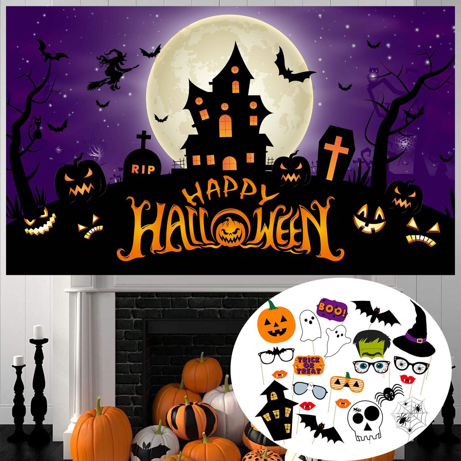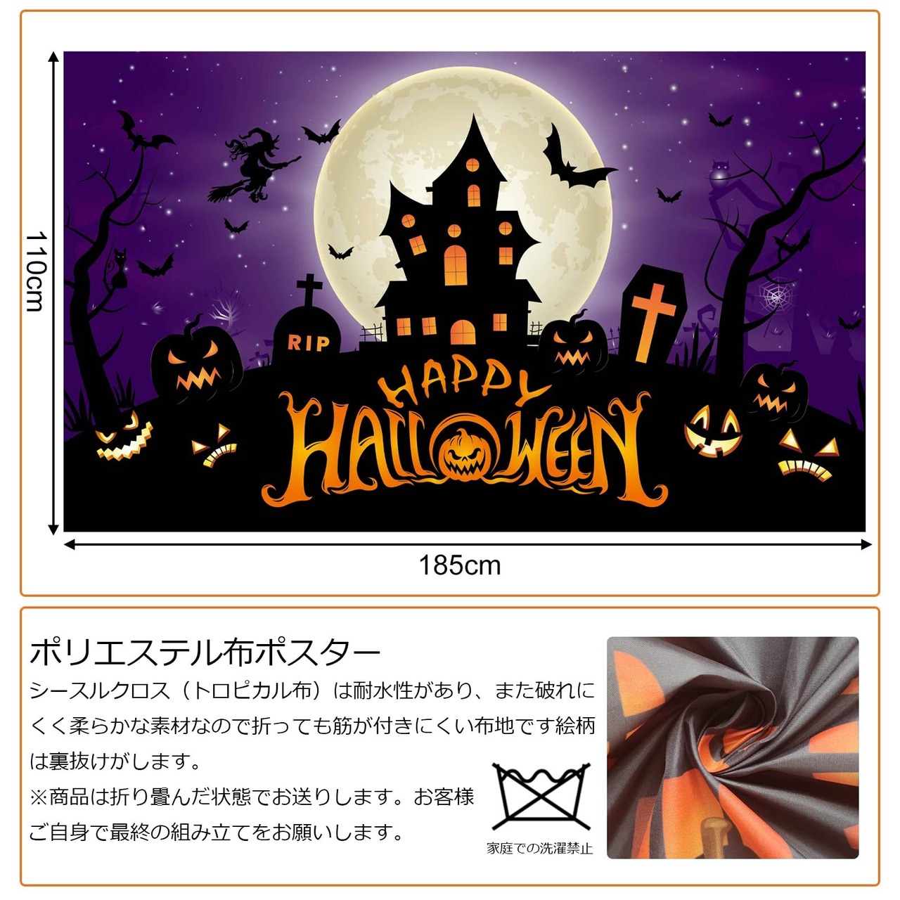 Lausatek ハロウィン 飾り タペストリー 飾り付け 壁掛け ハロウィンバナー フォトポスター 写真背景 プロップス 写真小道具 パーティー Happy Halloween タイプC(フォトプロップス付き)