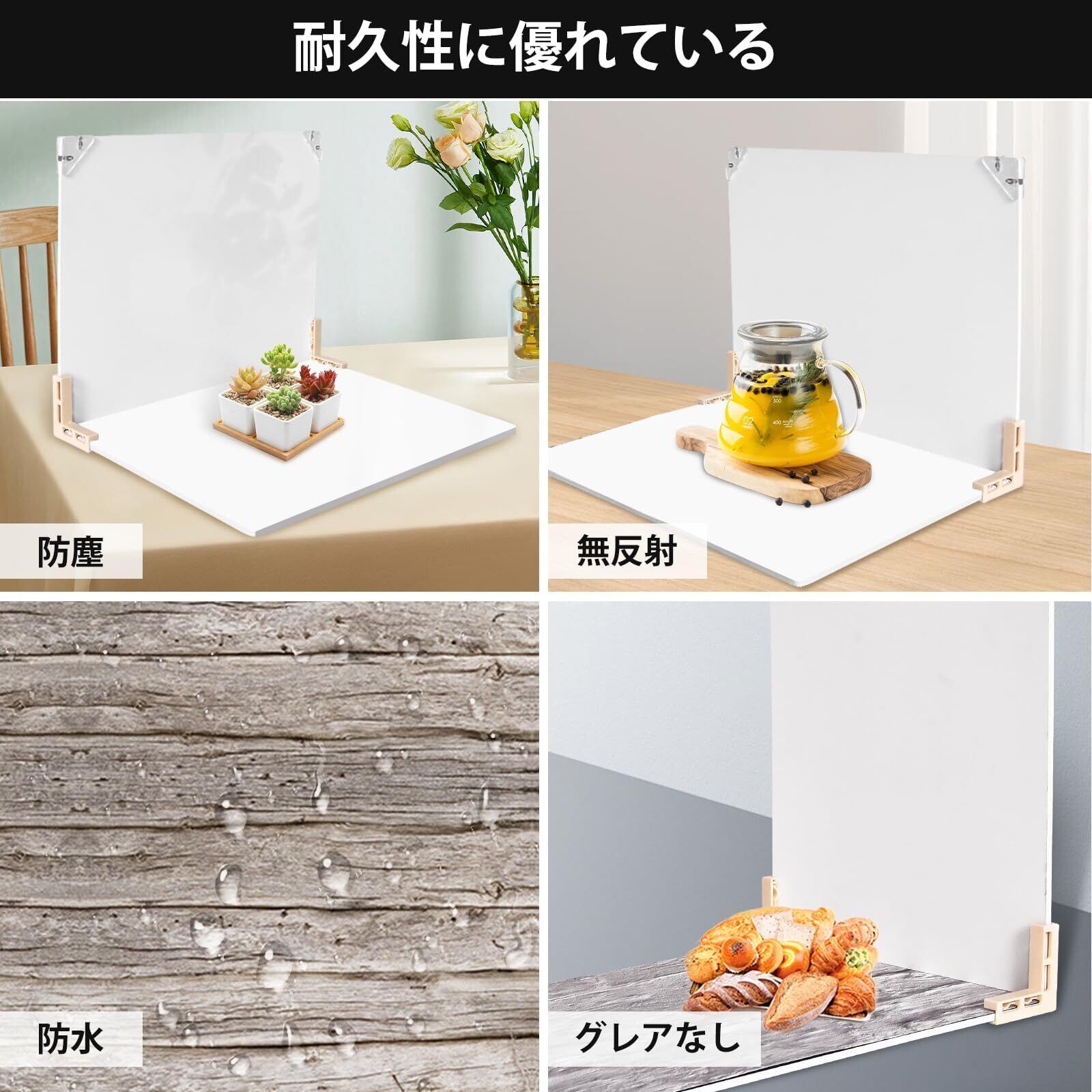【反射がない&清潔性】本物の立体的な質感の撮影背景ボードは反射を防ぐほどボール紙素材を採用し、反射性もないし、耐久性があり、長くお持ちいただけます。防水可能な表面は汚れでも、濡れた布で拭くことができ、被写体を自然に引き立てられます。