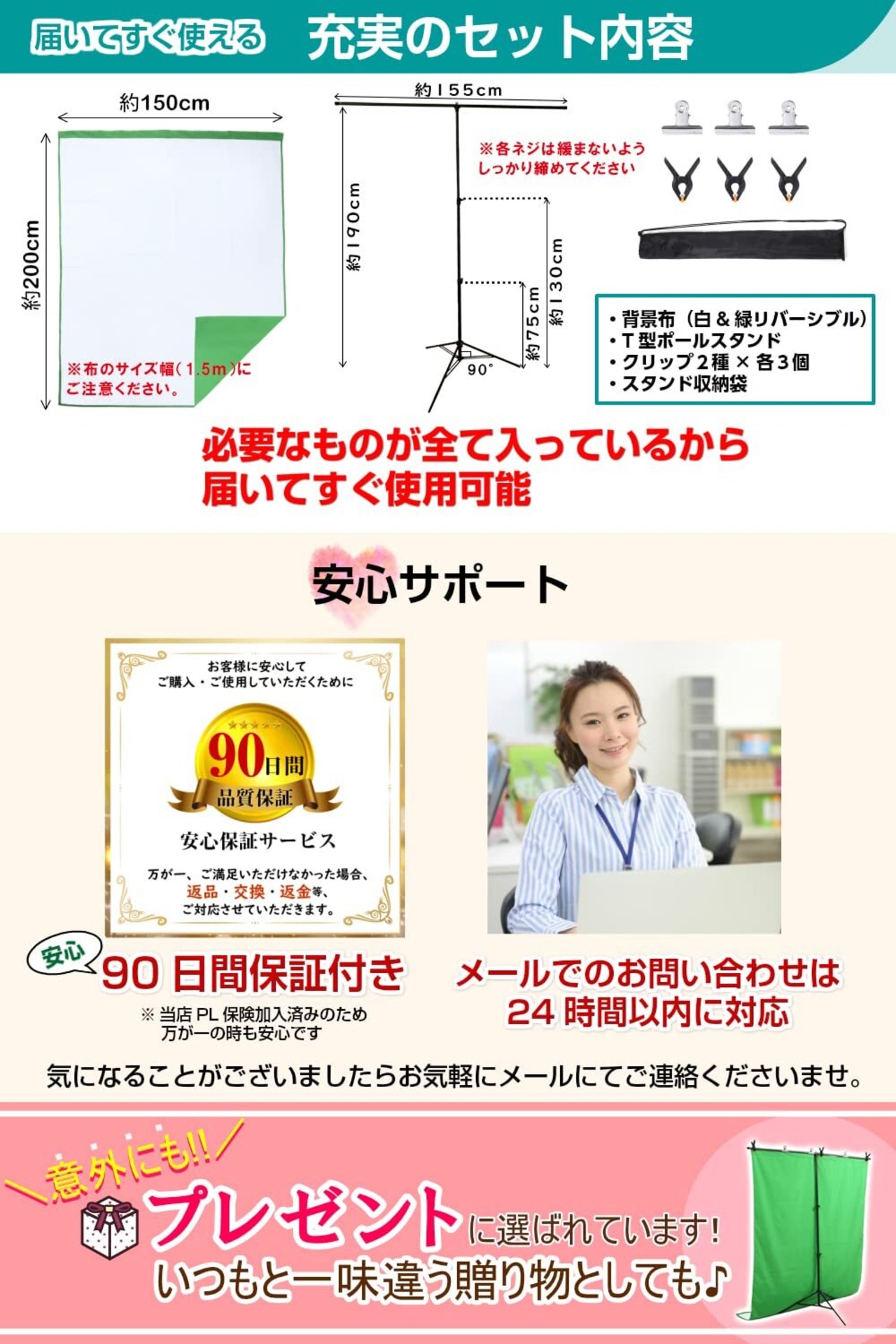 サイズ 背景布 (両面) + スタンド