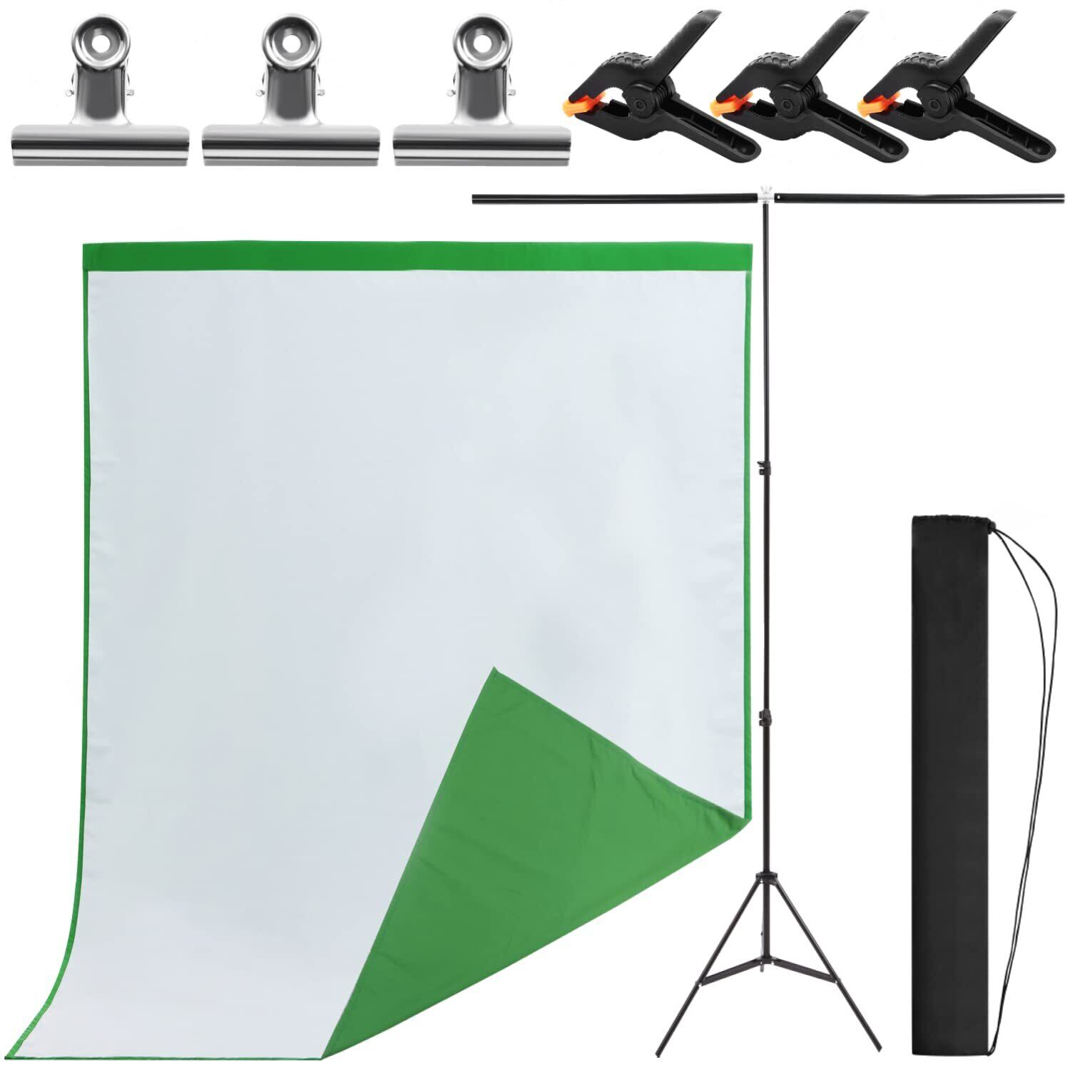 Co-Goods 背景布 スタンド 1.5×2m[ 緑 白 リバーシブル (両面)(透けにくい)][すぐ使えるフルセット] グリーンバック バックスクリーン 背景 布 在宅 リモート クロマキー バーチャル背景 撮影用背景 クロマキー合成 テレワーク リモートワーク テレビ会議 オンライン飲み会