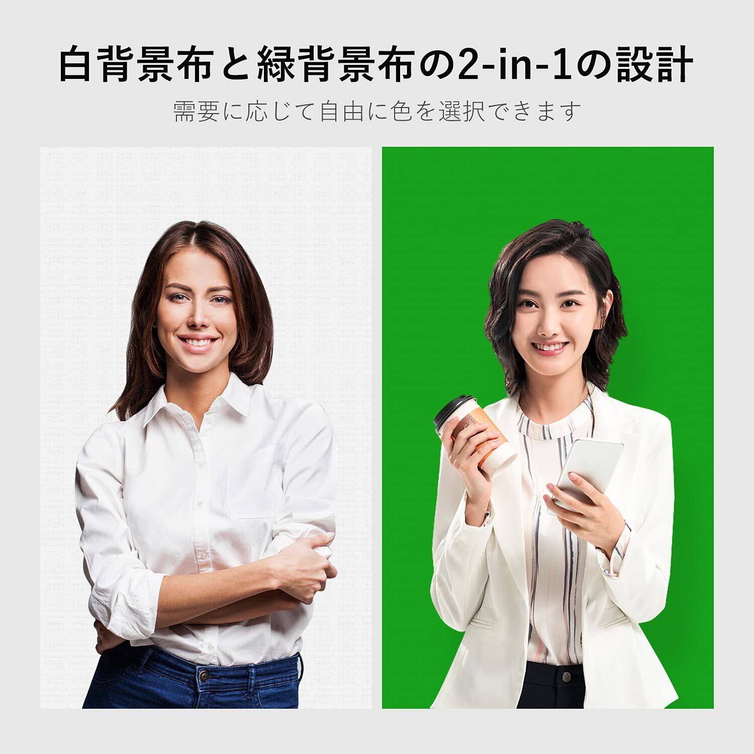 ■【多目的に活躍するホワイト背景布!】UTEBITの背景布は、150cm x 200cmの大きさで、グリーンスクリーンとしても使用できるホワイトバックドロップです。急なWEB会議やオンライン面接の際に、素早くクリアな背景を提供します!用途に応じて、リモートワークやテレワークの他、動画配信や写真撮影にも最適です。