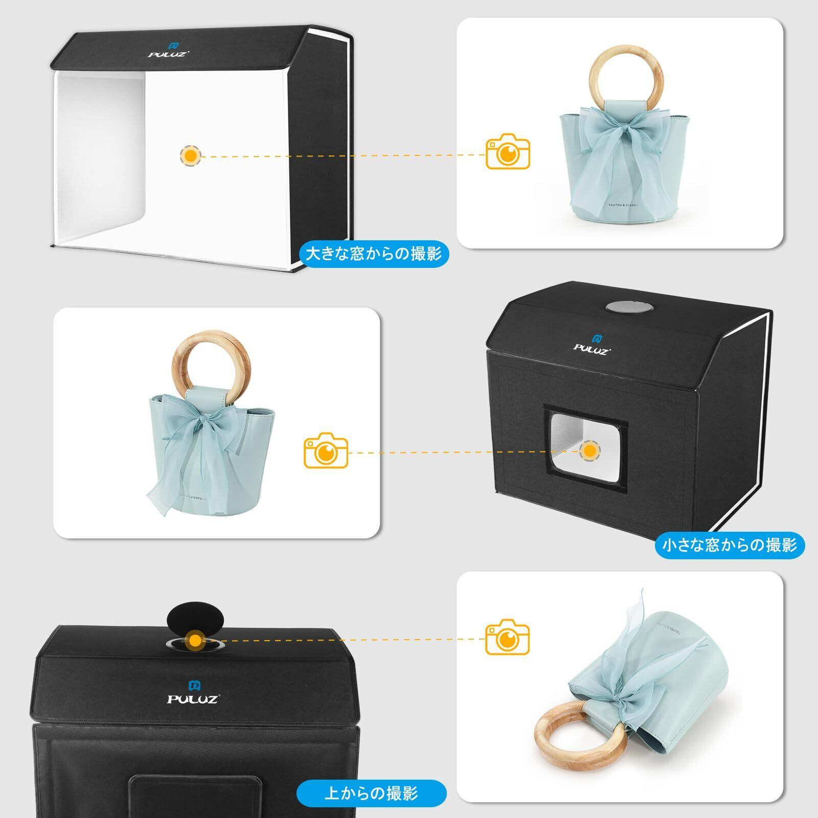 PULUZ 撮影ボックス 60×50×40cm 撮影ブース 折り畳み 物撮りセット 672個LEDビーズ/超高輝度/3色温度/無段階調光/4色PVC背景/ディフューザー付き 卓上写真撮影キット 物撮り用ボックス プラモデル 撮影ブース 携帯便利&組立簡単&収納便利 自宅撮影台 撮影用アイテム (60×50×40cm)