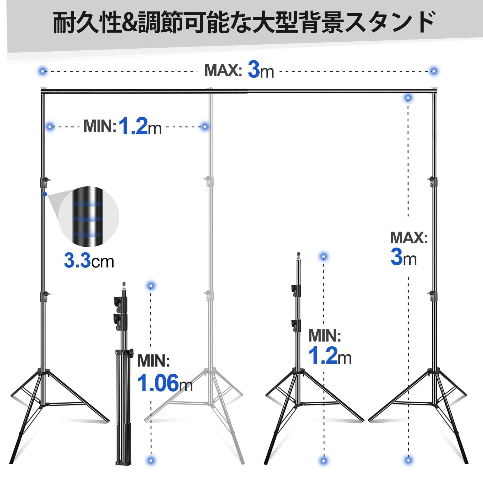 EMART 背景スタンド 300x300cm 高さ、幅調節可能 撮影スタンド 撮影用 背景スタンドセット グリーンバックスタンド 写真撮影用 人物 商品 ビデオ撮影に対応 撮影スタジオ/誕生日/結婚式/クリスマス/パーティ/などに対応 組み立ては簡単 安定性がよい 持ち運びに便利 三脚ケース付き