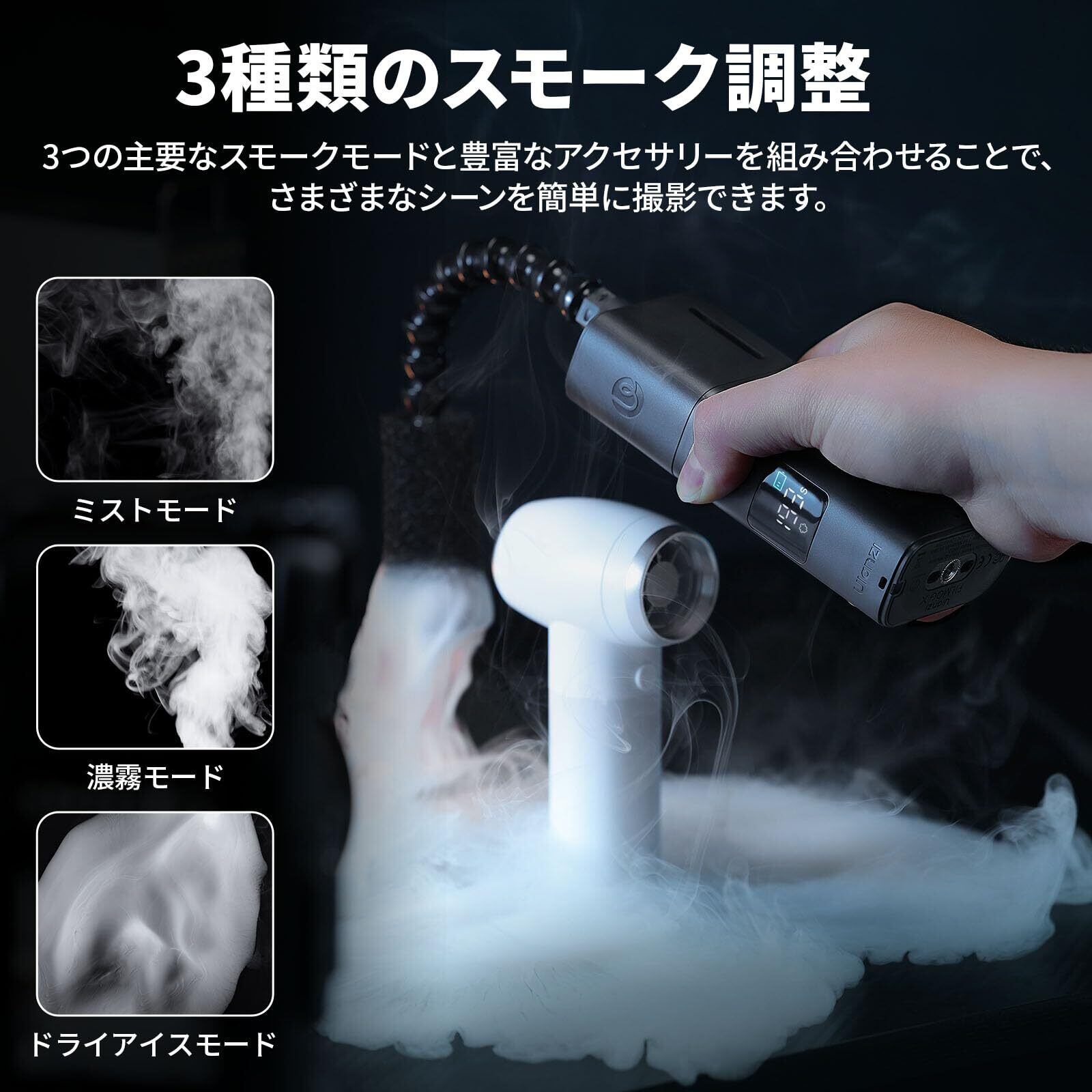 ■【3種類のスモーク調整機能!】スモーク濃度を自在に変更できる機能が搭載され、撮影シーンに応じた演出が可能です。ディスプレイ付きなので、設定状況も一目で確認でき、安心してご利用いただけます。