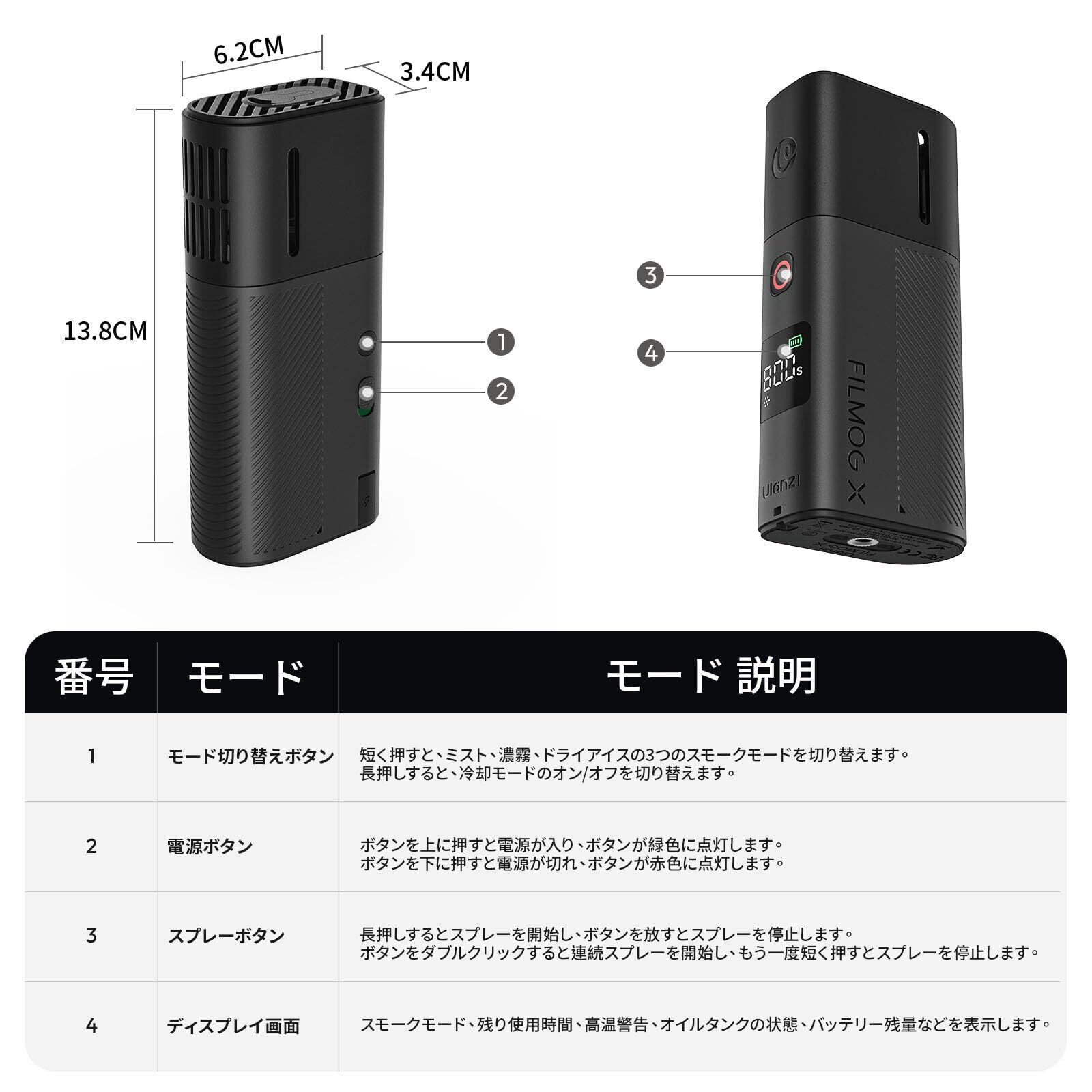 【人気商品】Ulanzi FM02 FILMOG X ポータブル 小型フォグマシン 手持ち式 スモークマシン コンパクト ミニ煙霧機 3種類のスモーク調整 ディスプレイ付き Type-Cに対応 1/4インチ穴+Arri位置決め穴 ストラップ付き 専用収納袋付き 持ち運びに便利 個人撮影 スタジオ 広告撮影 フィギュア撮影 写真 屋外イベント パーティー 婚式/演出/劇場など対応 煙効果