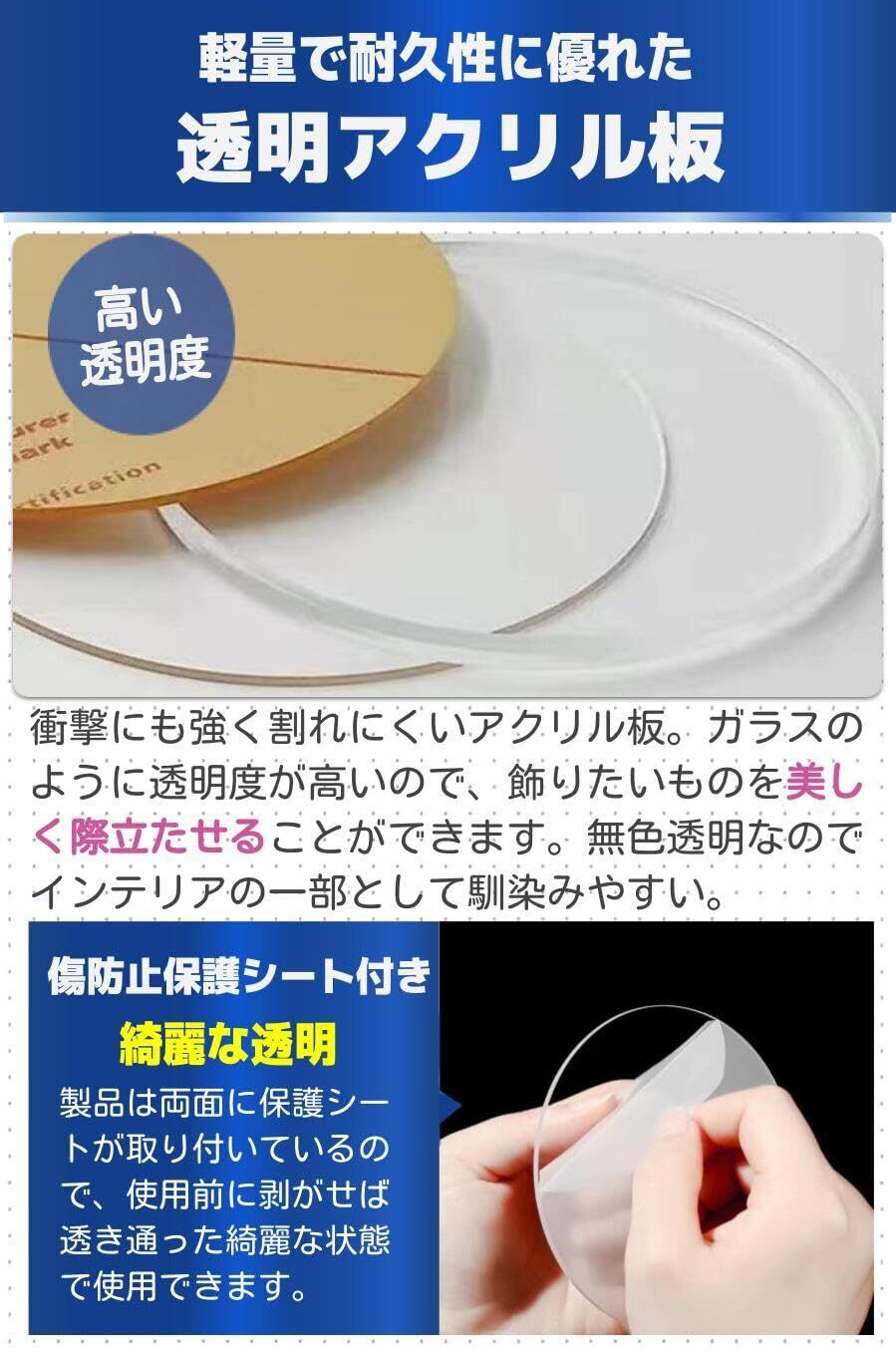 ■【便利な保護フィルム付き!】各アクリル板には保護フィルムが付いており、傷や汚れを防ぎます。使用する際にはフィルムを剥がすだけで、クリアな状態でお楽しみいただけます。