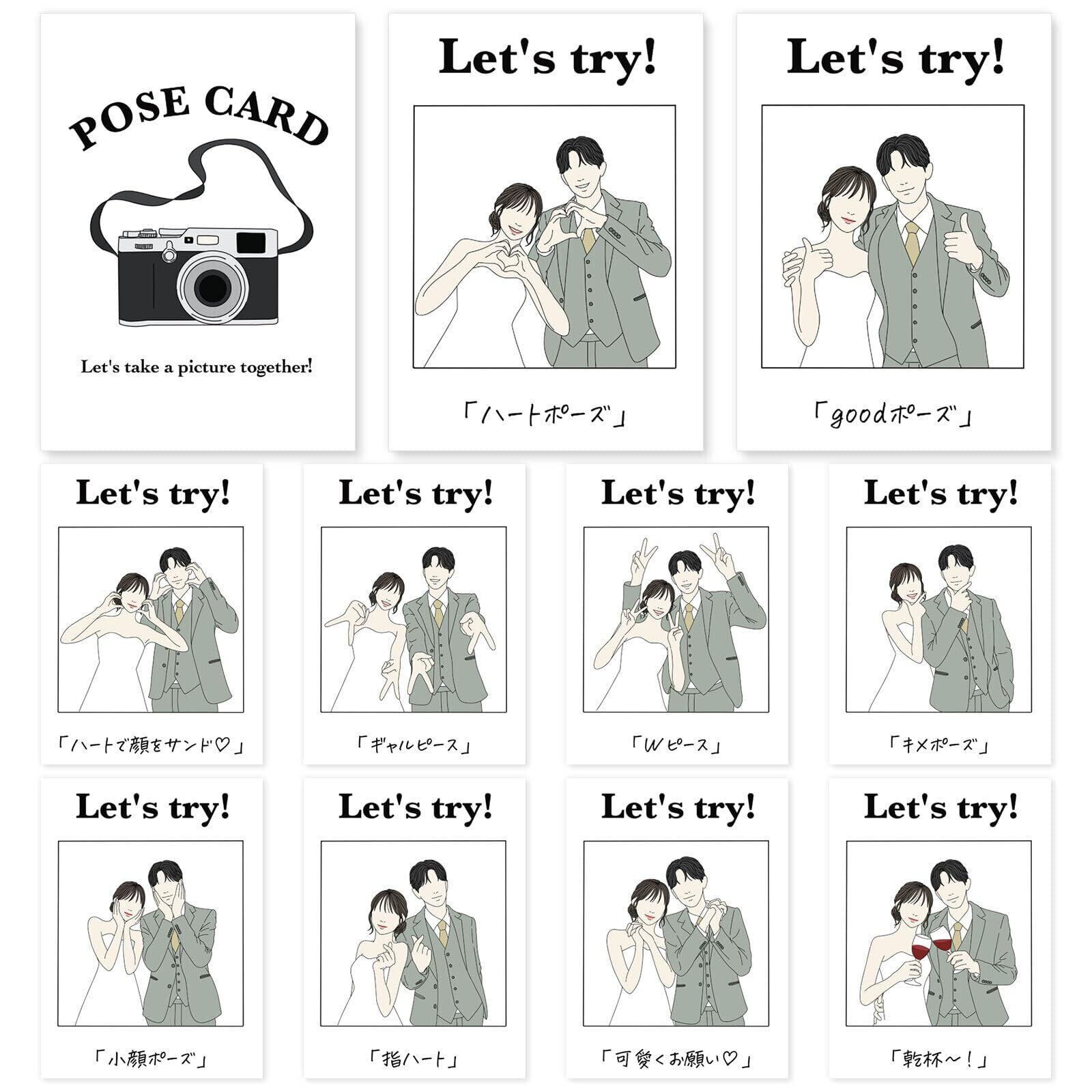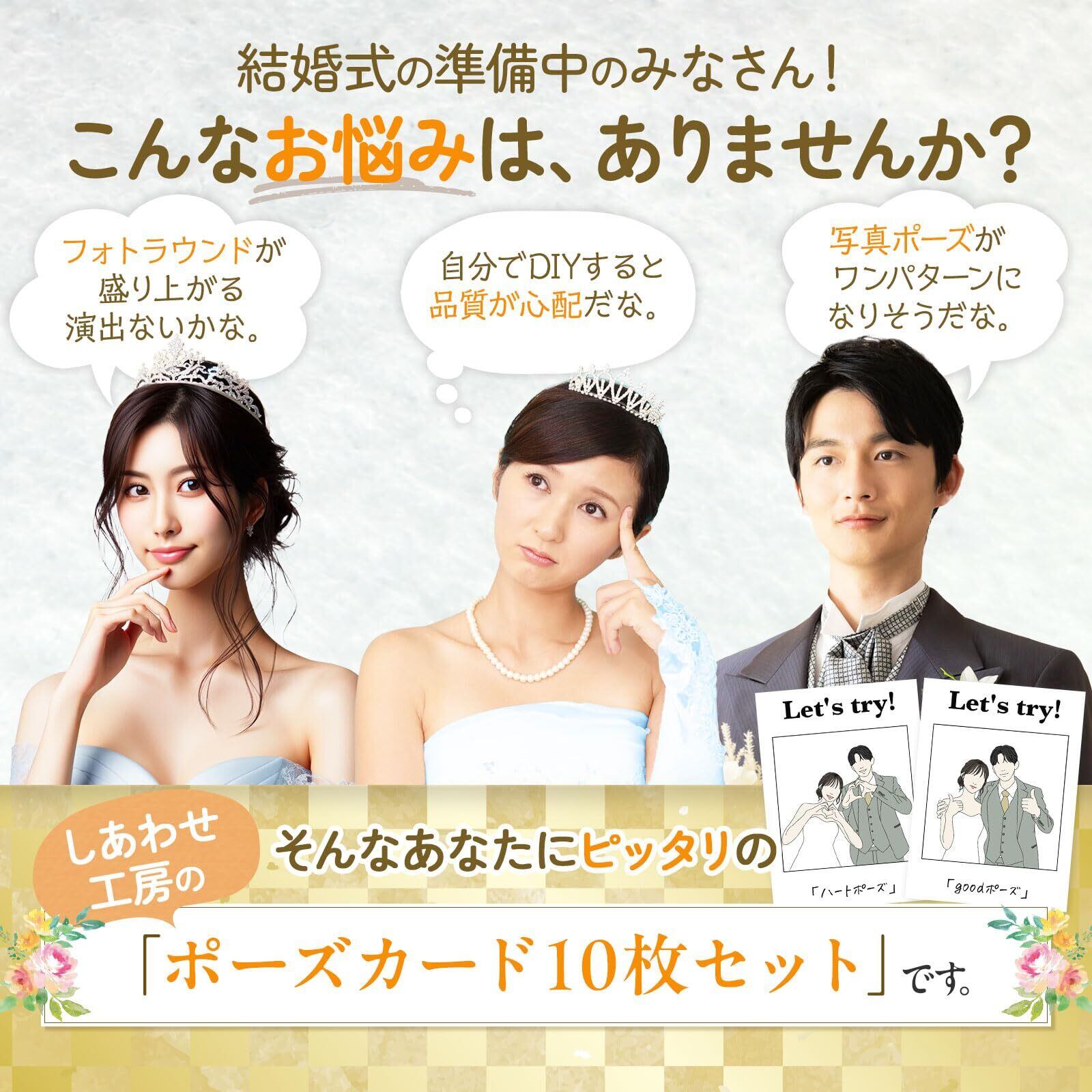 [しあわせ工房] ポーズカード 10枚セット カラー ハガキサイズ 結婚式 フォトラウンド テーブルラウンド 演出 二次会 余興 披露宴 ペーパーアイテム 写真 撮影 (4.ポーズカード(カラー) AI012)