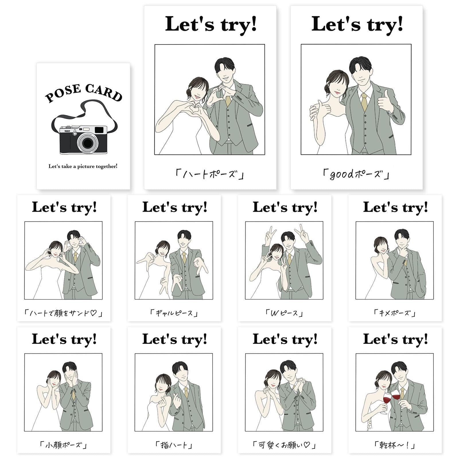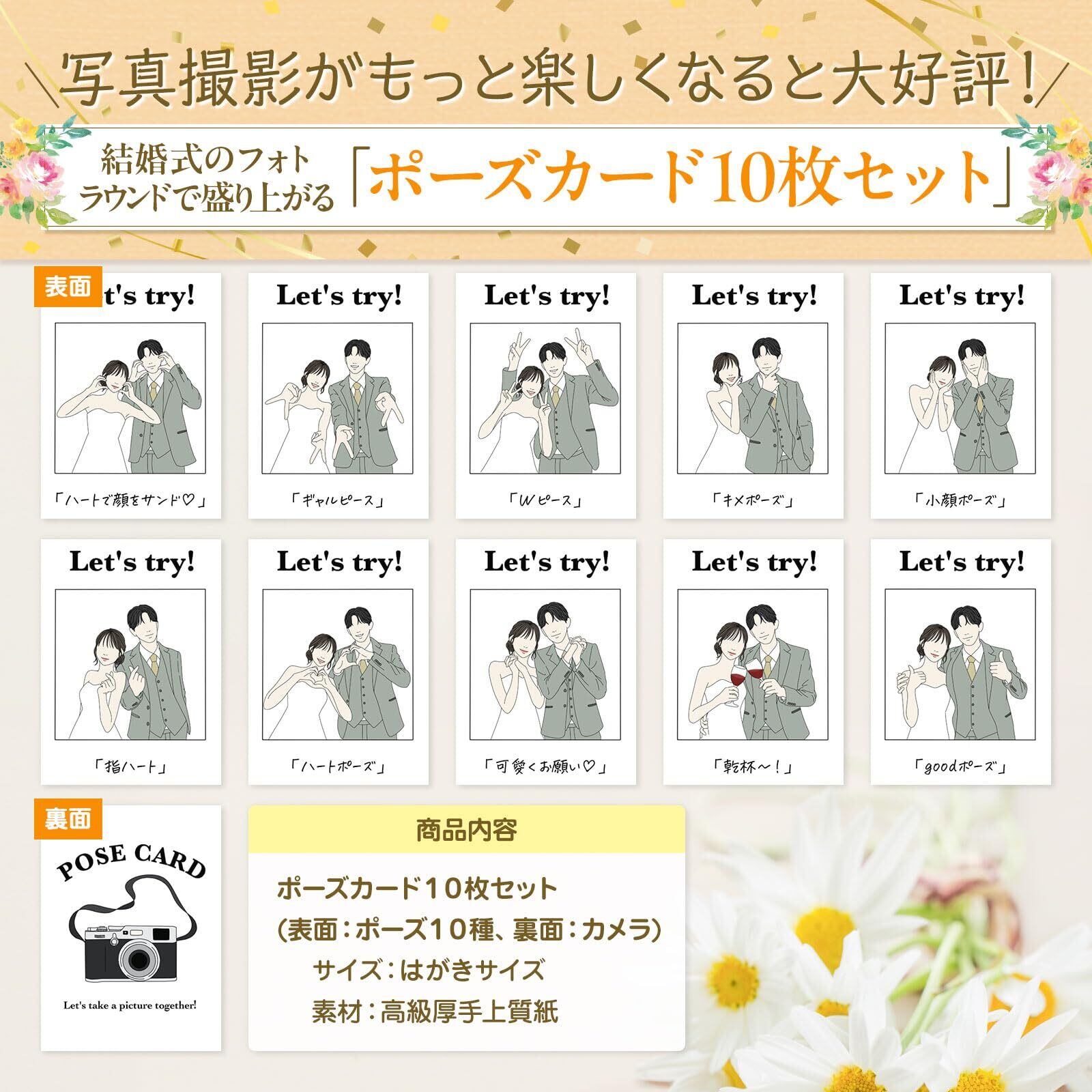 【2025最新】[しあわせ工房] ポーズカード 10枚セット カラー ハガキサイズ 結婚式 フォトラウンド テーブルラウンド 演出 二次会 余興 披露宴 ペーパーアイテム 写真 撮影 (4.ポーズカード(カラー) AI004)