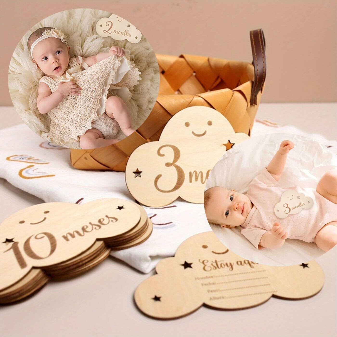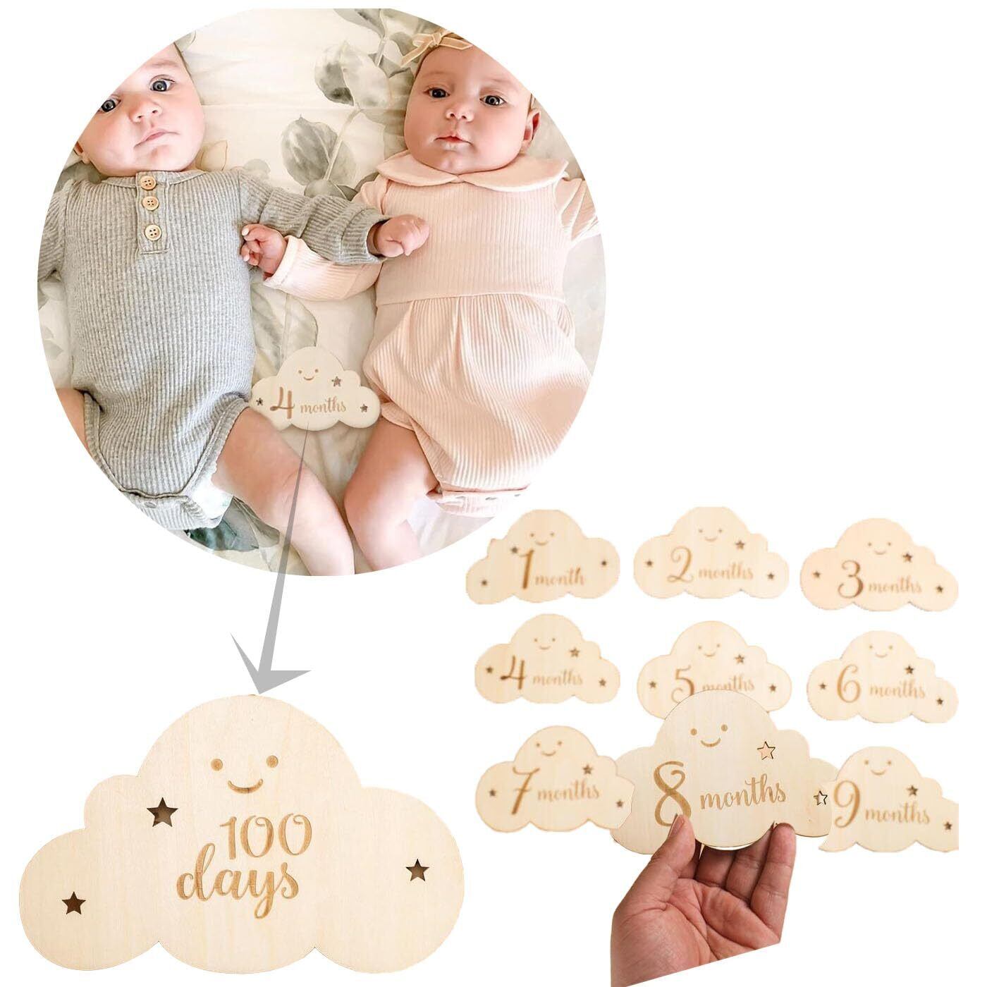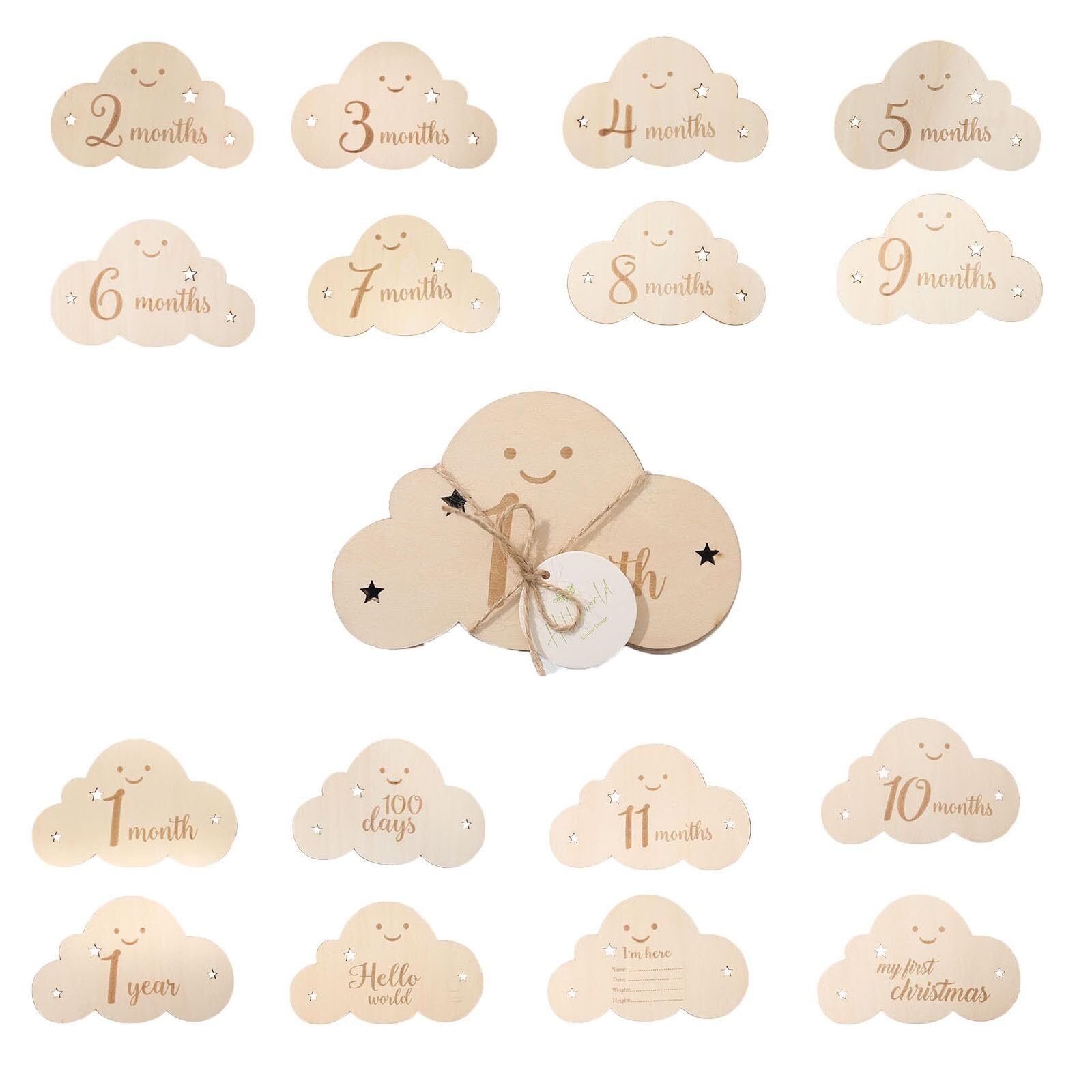 【LUYING】8個 の写真の小道具 DIY クラフト雲形 ウッド 撮影道具 木製 月齢カード 収納袋付き 記念日フォト 出産祝い 赤ちゃん 新生児 成長記録