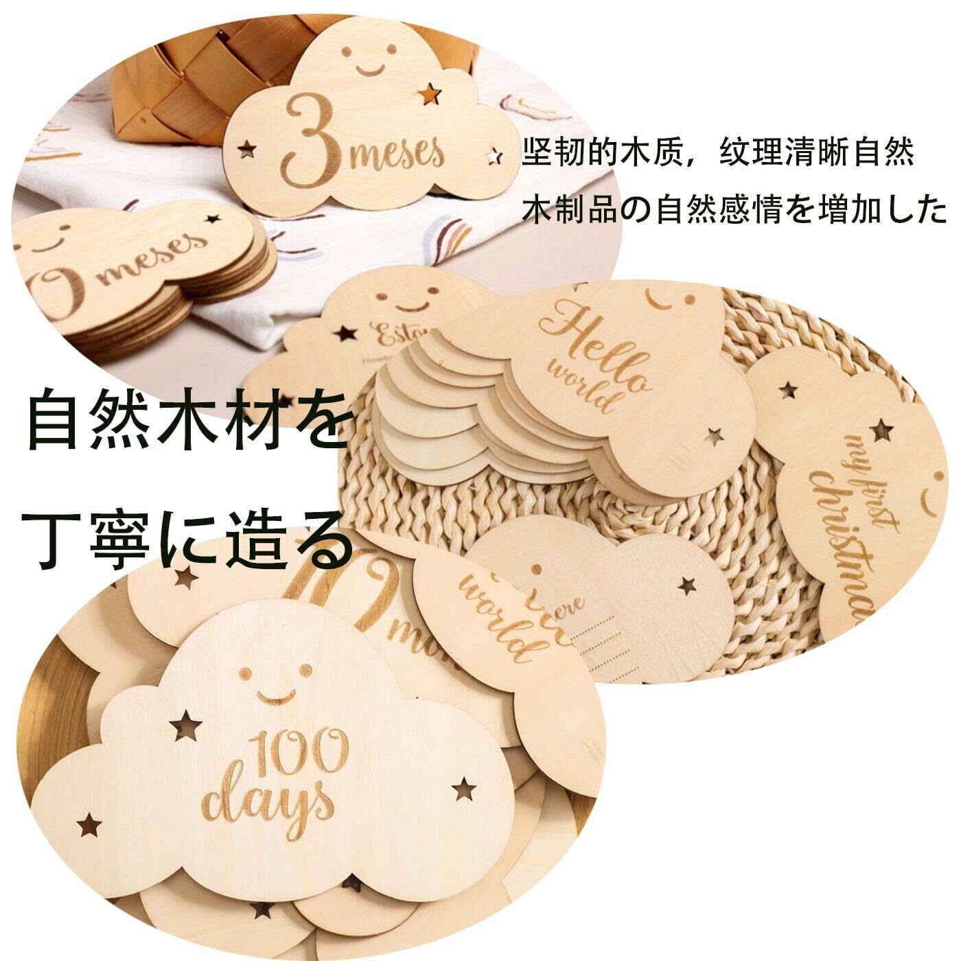 【人気商品】【LUYING】8個 の写真の小道具 DIY クラフト雲形 ウッド 撮影道具 木製 月齢カード 収納袋付き 記念日フォト 出産祝い 赤ちゃん 新生児 成長記録