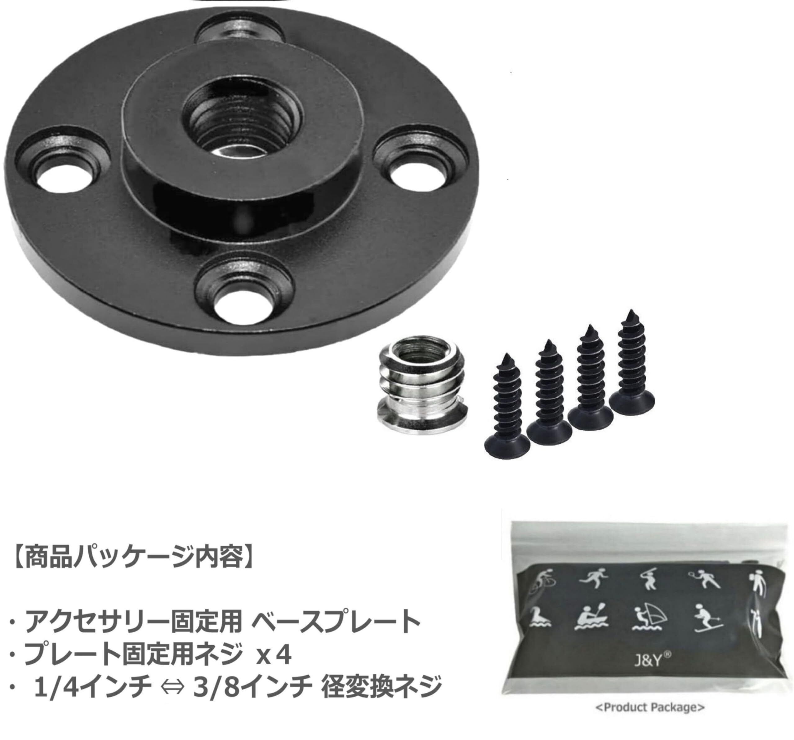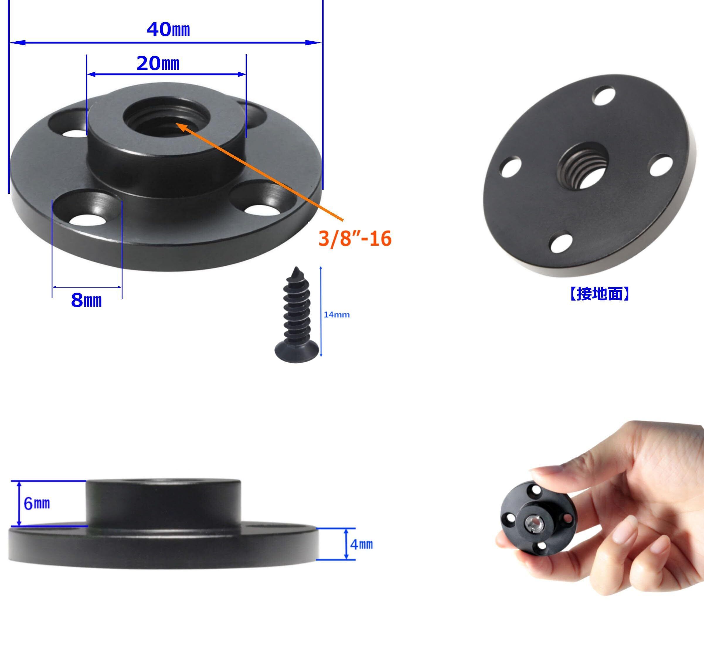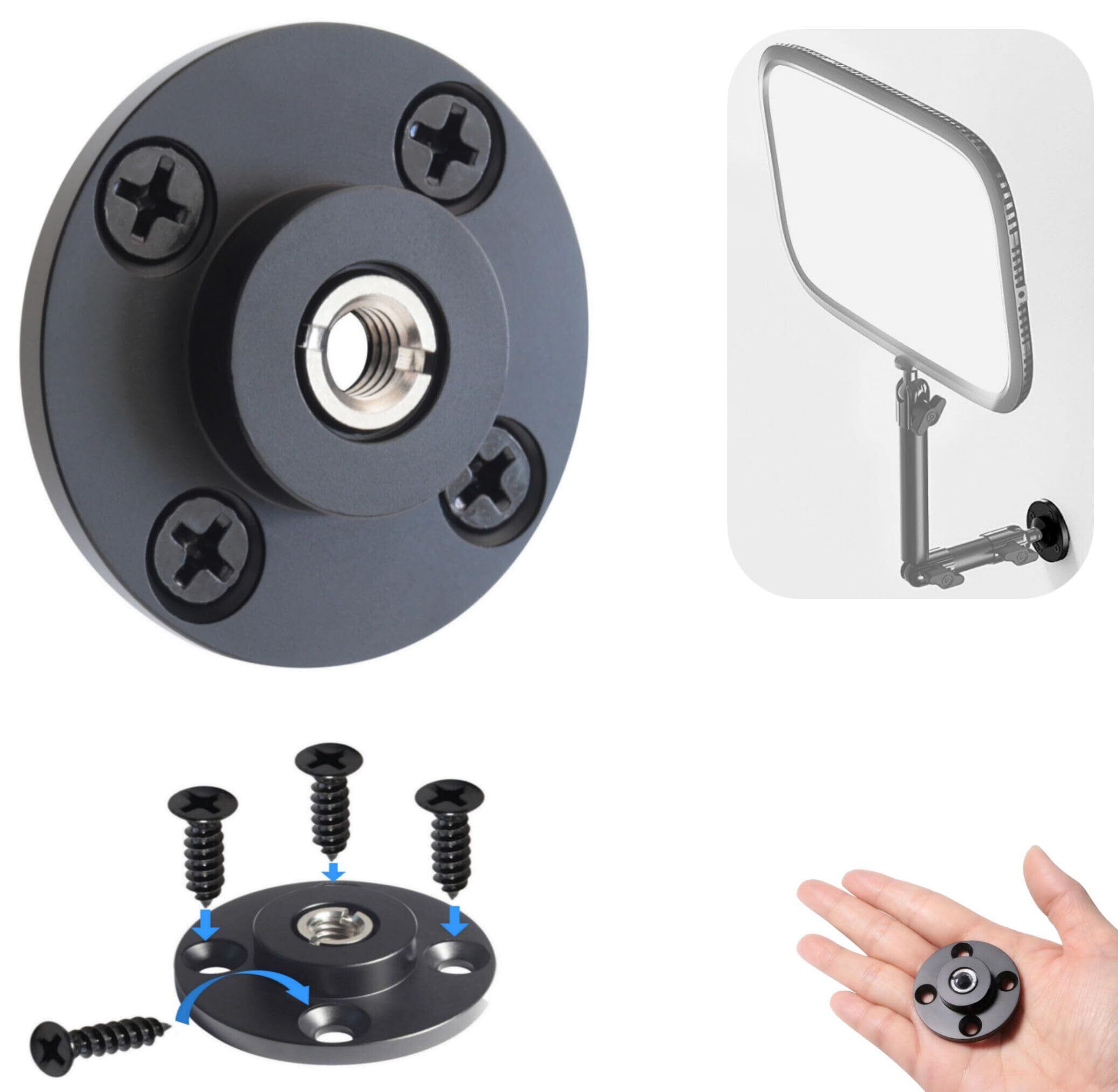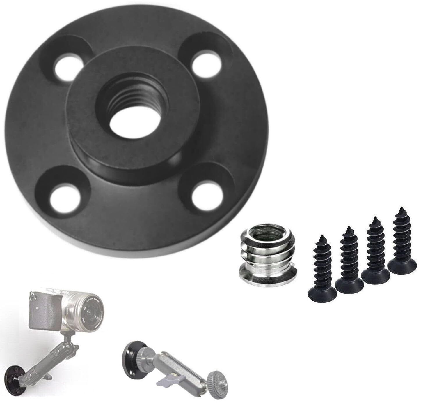 【高い汎用性】壁や天井、斜面など水平面にネジ締めするだけで簡単に固定できます。付属のネジを使用して、ボードやテーブルなどにも取り付け可能。DIY用途にも最適な接続コネクタです。3/8 インチ、1/4 インチ のカメラ・ビデオ、ウェアラブルカメラ・アクションカム 撮影用アクセサリー類、CCTV・防犯カメラ、監視カメラ・Wifiカメラ、センサーライト、音響機器類、アームジョイント、 ダボネジ・スピゴット、マイク用スタンド・LED照明、ディフーザー、DIYデバイス、マイク、LEDライト・照明機器などアクセサリー類に対応するネジ固定式ベースマウント 、ウォール アダプター プレートです。壁や天井、斜面など水平面でネジ締めが可能な場所に固定が出来ます。直径4㎝とコンパクトなサイズでスペースのない場所でも活躍します。