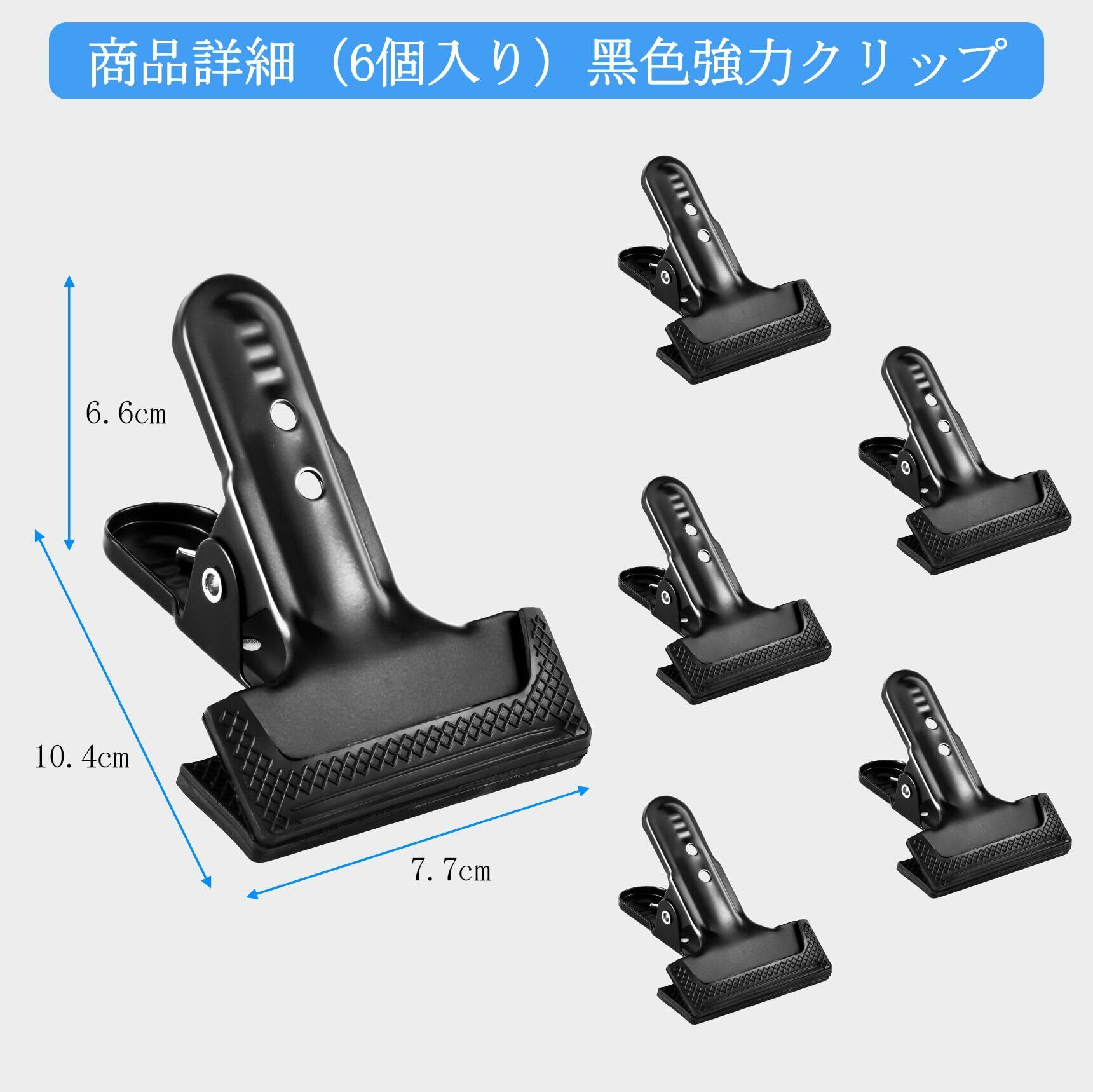 【在庫限り】Selens 撮影用 クリップ 強力 大 背景布クリップ 6個セット 金属製 万能クランプ 撮影布ホルダー/撮影機材/写真撮影スタンドに適用 滑り止め ゴム/ラバー付き (黒)