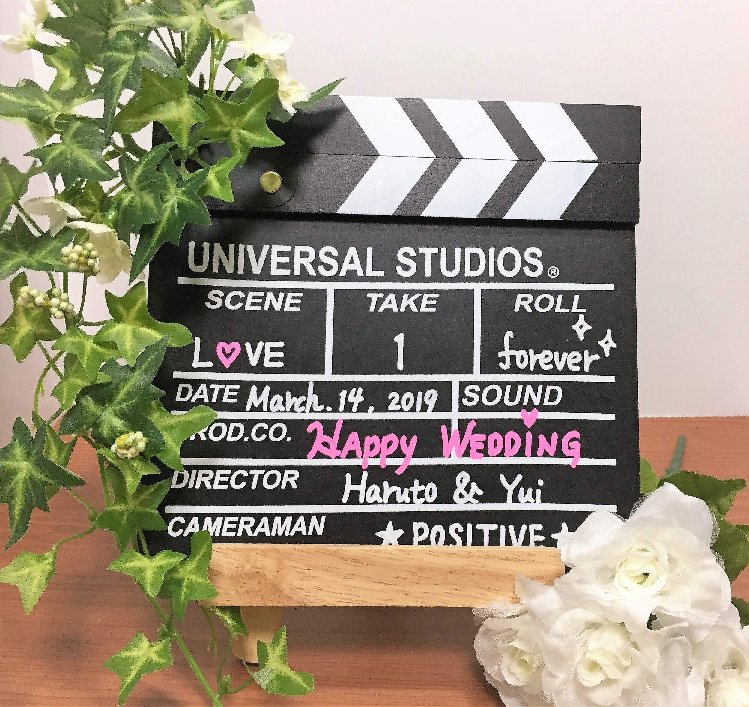 <ご使用用途>【①撮影に】自主作成映画などの本格撮影はもちろんのこと、お仕事の動画撮影、結婚式・お誕生日・還暦などのお祝い事のメモリアルムービー、文化祭のショートムービー、インスタグラムなどのSNS用撮影など普段使いとして幅広くご使用いただくことができます。【②インテリアに】本物感がありますので、お店のオブジェやインテリアとしても大変人気です。【③ウェルカムボードやプレゼントに】白やピンクのマジックをご使用いただき掲載写真のようにウェルカムボードの作成などにご利用いただけます。ウェルカムボードや撮影にご使用いただいたカチンコを記念品としてプレゼントすればいっそう喜ばれることと思います