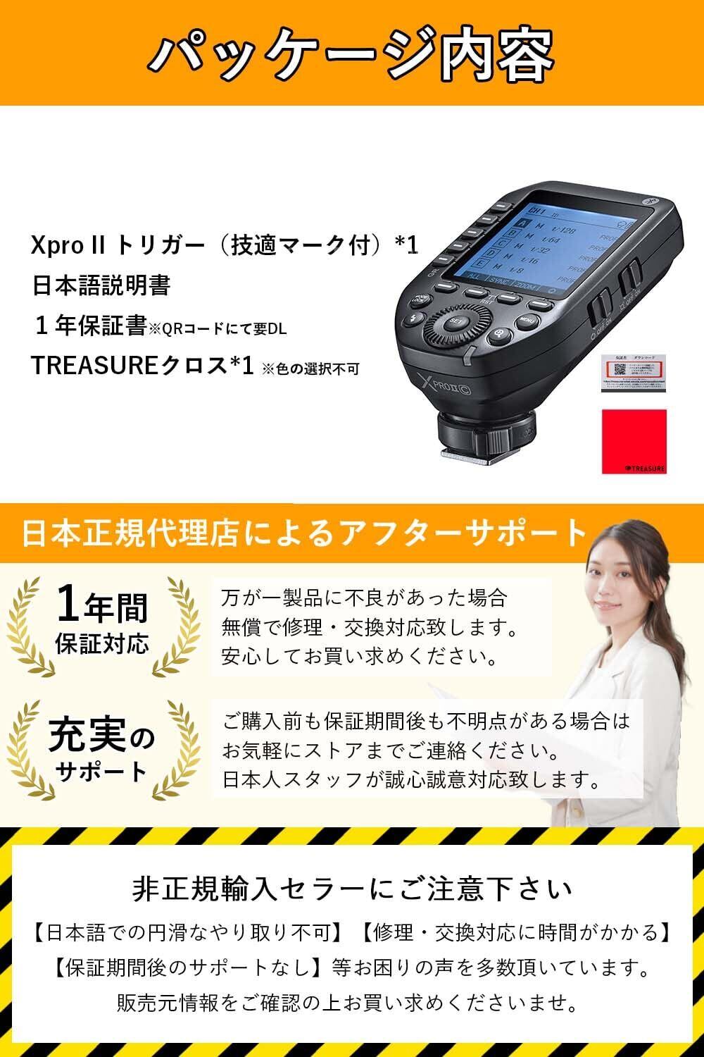 ◆【うれしいセットパッケージ】 標準パッケージ [ XPro II トリガー、日本語説明書]に加え、セットパッケージとして [ TREASUREクロス*1(※色の選択不可)、1年書(※付属のQRコードで要DL)]が付属します。日本語説明書&1年付なので、安心してご使用いただけます。