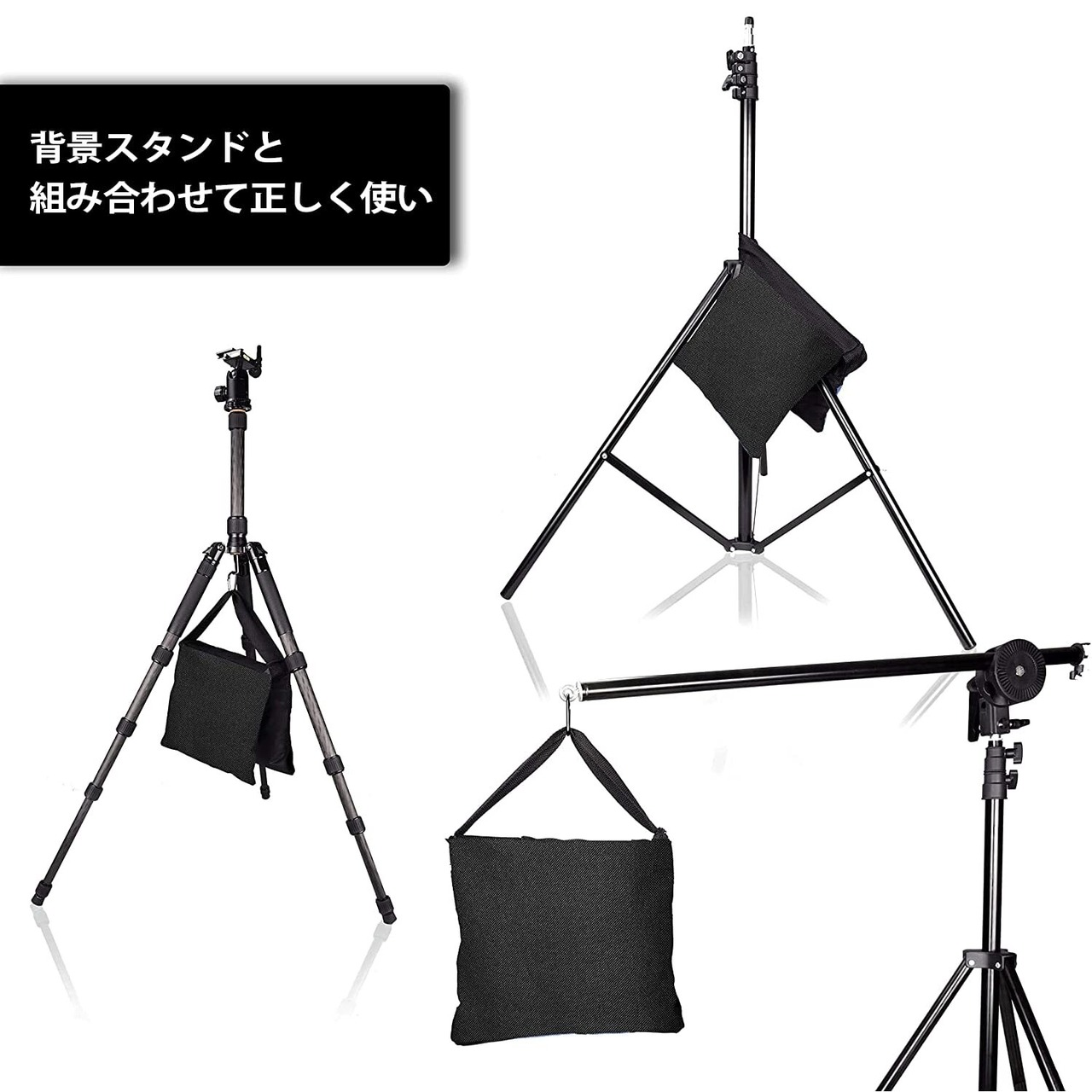■【高い耐荷重性能で安心して使用!】このサンドバッグは、耐荷重が最大11kgとなっており、重し袋には砂や水を入れるだけで、安全に使用することができます。確実な固定力で、集中して撮影に取り組むことが可能です。