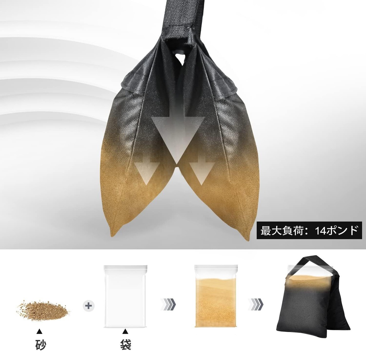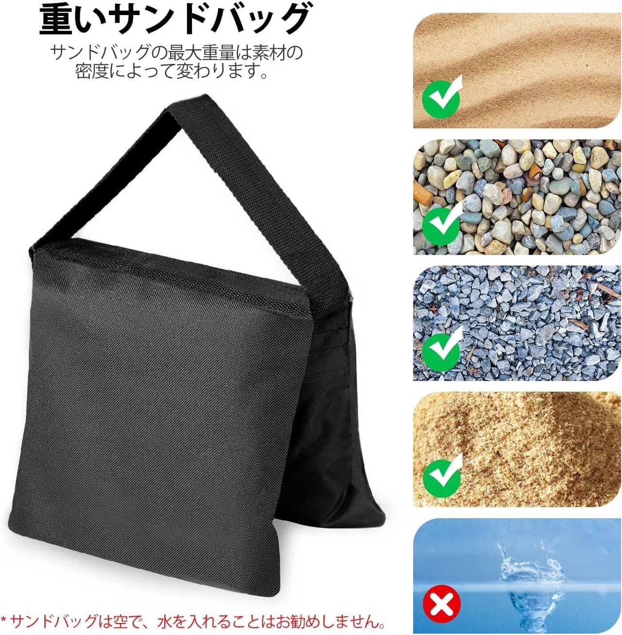 【上質なサンドバッグ】高品質のナイロン構造にアップグレードされ、強風や凹凸のある地面で素晴らしい役割を果たします。ダブルステッチの縫い目が安定性と丈夫さを強化し、より耐久性があります。二層のジッパーがあるので、中身は漏れにくい。サドルバッグの形で、鉄製フックで三脚にかかることができ、使いやすいです。高強度防水、お手入れ簡単。 通常5年間以上使用できます。
