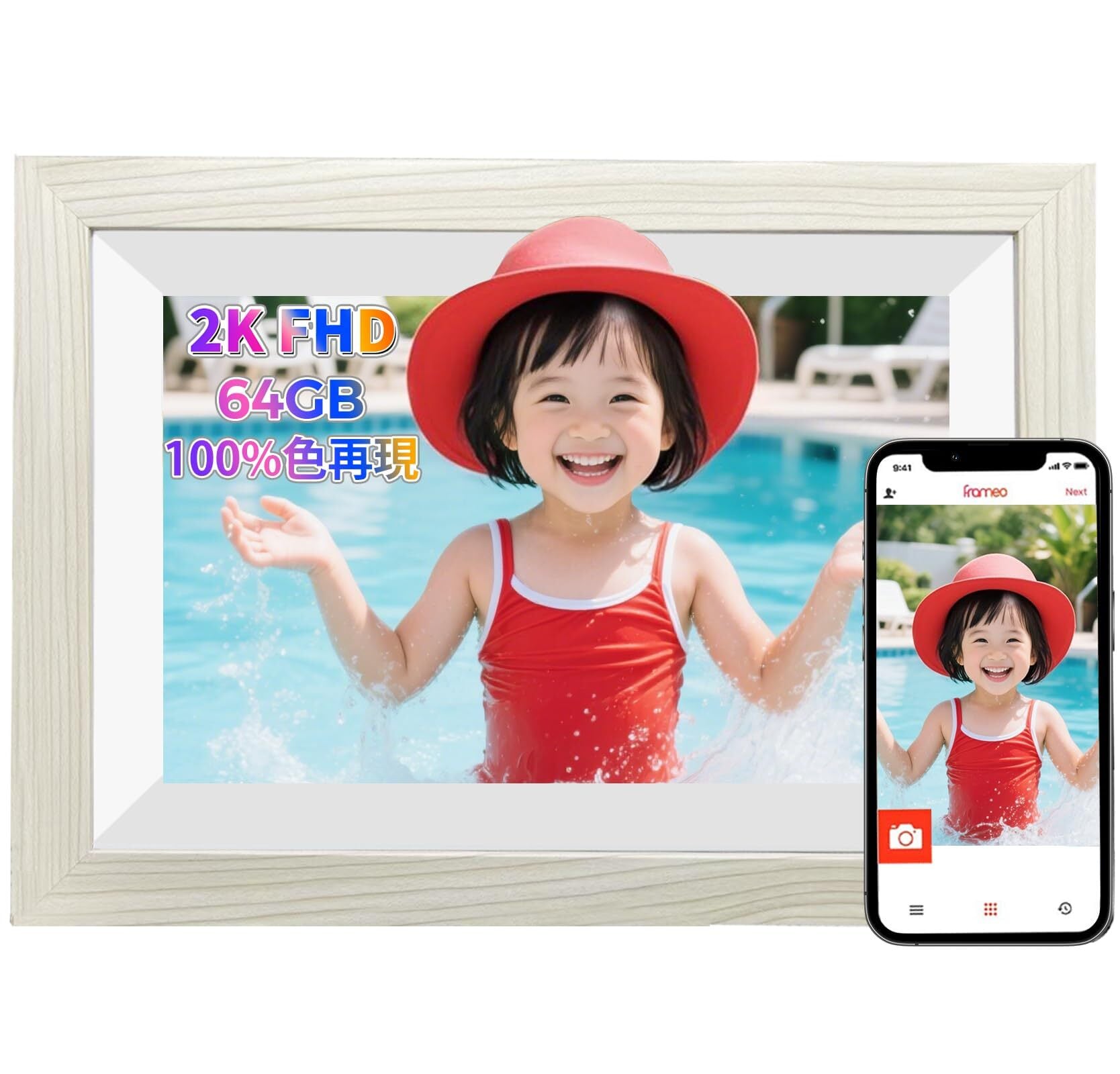 【大容量64GB内蔵&多様な送信方法】スマホからSDカードまで、思い出の写真や動画を手軽に共有できるデジタルフォトフレーム!内蔵メモリ64GBで約80,000枚の写真を保存可能(アルバム20年分を凝縮)、日本市販のmicroSDカード拡張可能です。専用アプリ「Frameo」で、一度に最多10枚写真(動画15秒)を送信。MicroSDカードで写真/動画を大量にインポートでき、その場合は動画時間に制限はありません。Wi-Fiがなくても問題なく、SDカードを挿入だけで写真や動画を再生できるできるシンプル設計です。️ご注意:通常のFrameoアプリは無料ですが、Frameo+バージョンは有料です。アップデートの際はご注意ください。