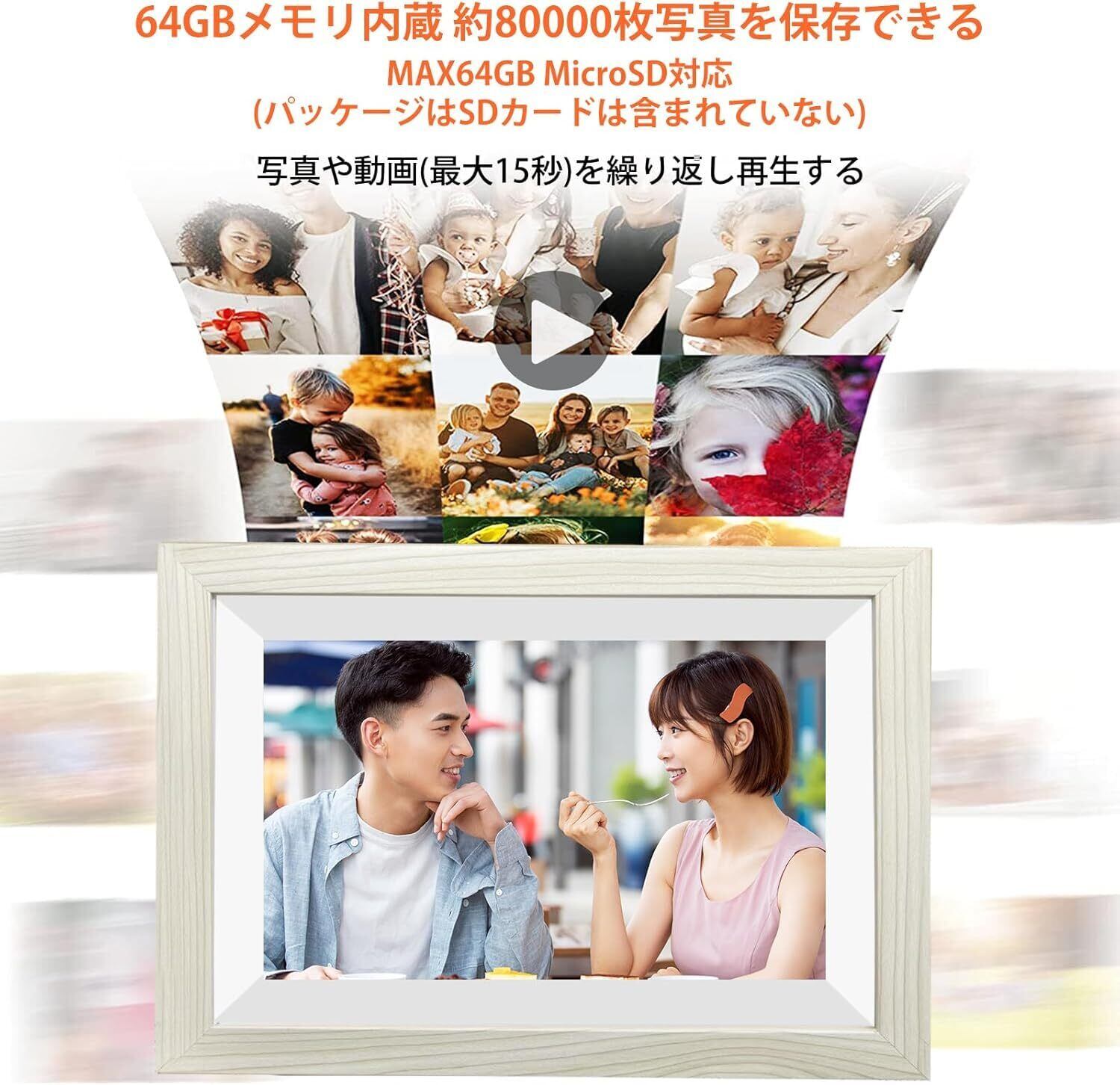 FHD1920×1280 64GB内蔵 デジタルフォトフレーム 【2025新登場 2K液晶】デジタル写真立て 人感センサー 10.1インチ WIFI IPSタッチスクリーン 操作簡単 外部最大64GBMicroSDカード対応 無料アプリ「Frameo 」 360°自動回転 壁掛け可 時計 天気予報 写真動画同時再生 撮影日表示 母の日 父の日 敬老の日 誕生日 PSE認証済み 日本語取扱説明書