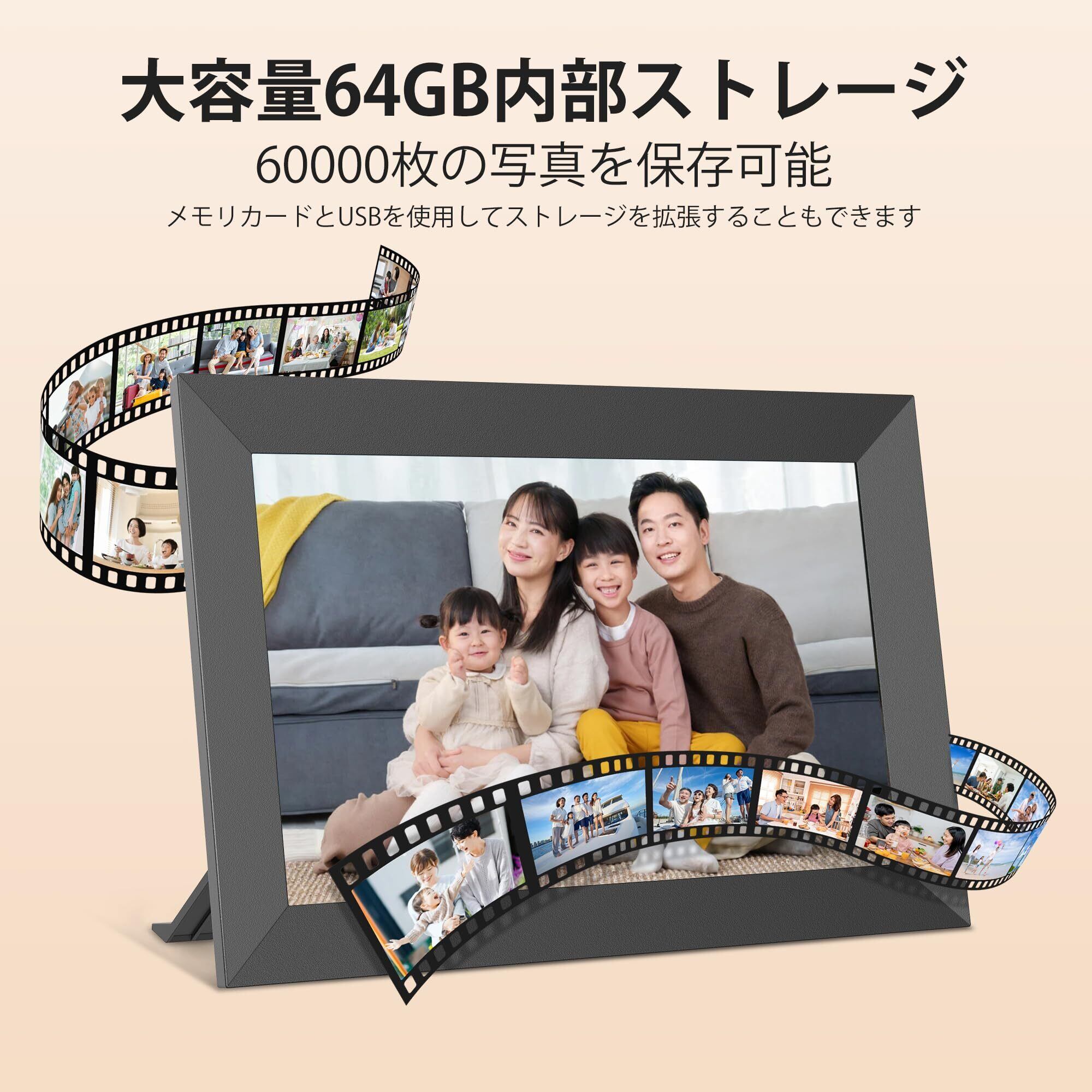 【在庫限り】Frameo 64GB デジタルフォトフレーム 10.1インチ 1280*800 IPSタッチパネル 広角視野 無料アプリ WiFi対応 自動回転 動画 写真 音楽 転送 遠隔 スライドショー機能 プレゼントに適用